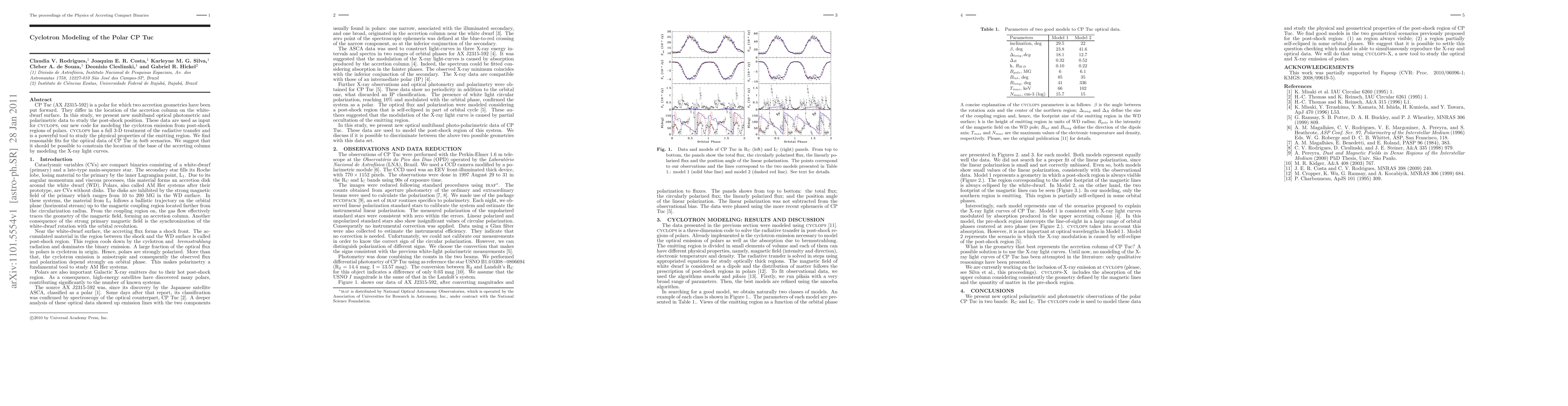 CP Tuc (AX J2315-592) is a polar for which two accretion geometries have been put forward. They differ in the location of the accretion column on the white-dwarf surface. In this study, we present new multiband optical photometric and polarimetric data to study the post-shock position. These data are used as input for CYCLOPS, our new code for modeling the cyclotron emission from post-shock regions of polars. CYCLOPS has a full 3-D treatment of the radiative transfer and is a powerful tool to study the physical properties of the emitting region. We find reasonable fits for the optical data of CP Tuc in both scenarios. We suggest that it should be possible to constrain the location of the base of the accreting column by modeling the X-ray light curves.