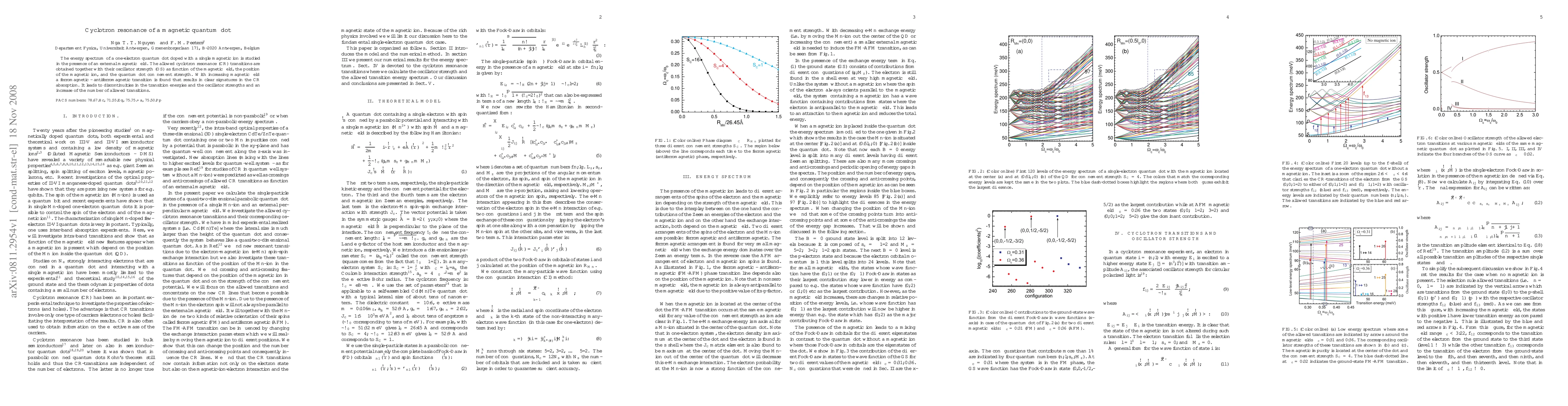 This study investigates the cyclotron resonance in a magnetic quantum dot with a single magnetic ion under an external magnetic field, revealing transitions and oscillator strengths dependent on field strength, ion position, and confinement. A transition from ferromagnetic to antiferromagnetic behavior is observed, leading to discontinuities in transition energies and oscillator strengths, and an increase in allowed transitions.