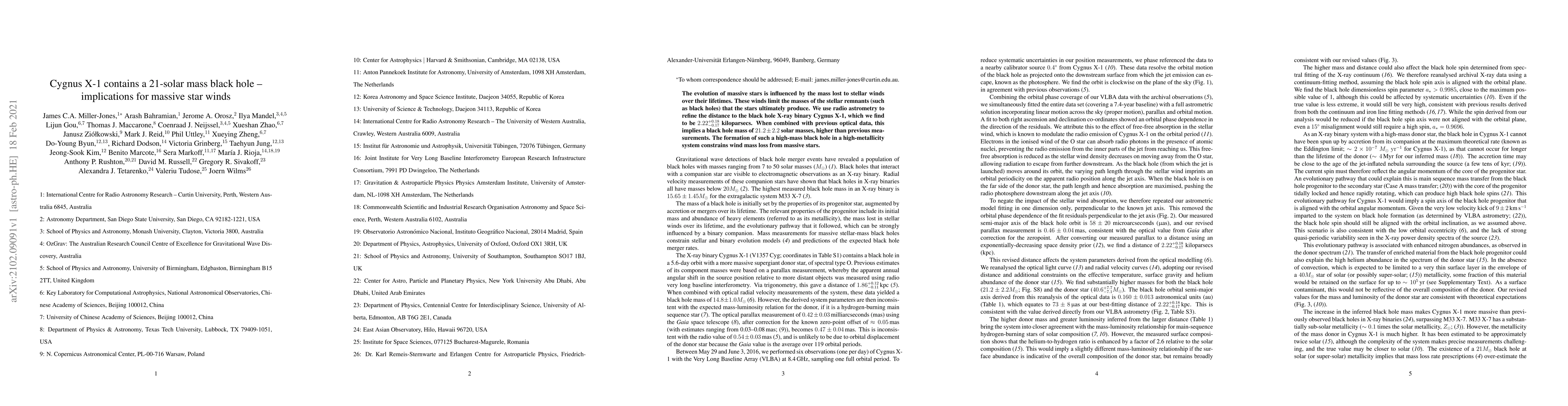 This study refines the distance to Cygnus X-1, revealing a black hole mass of 21.2 solar masses, higher than previous estimates. This finding constrains models of massive star wind mass loss, suggesting lower stellar wind influence in high-metallicity environments.