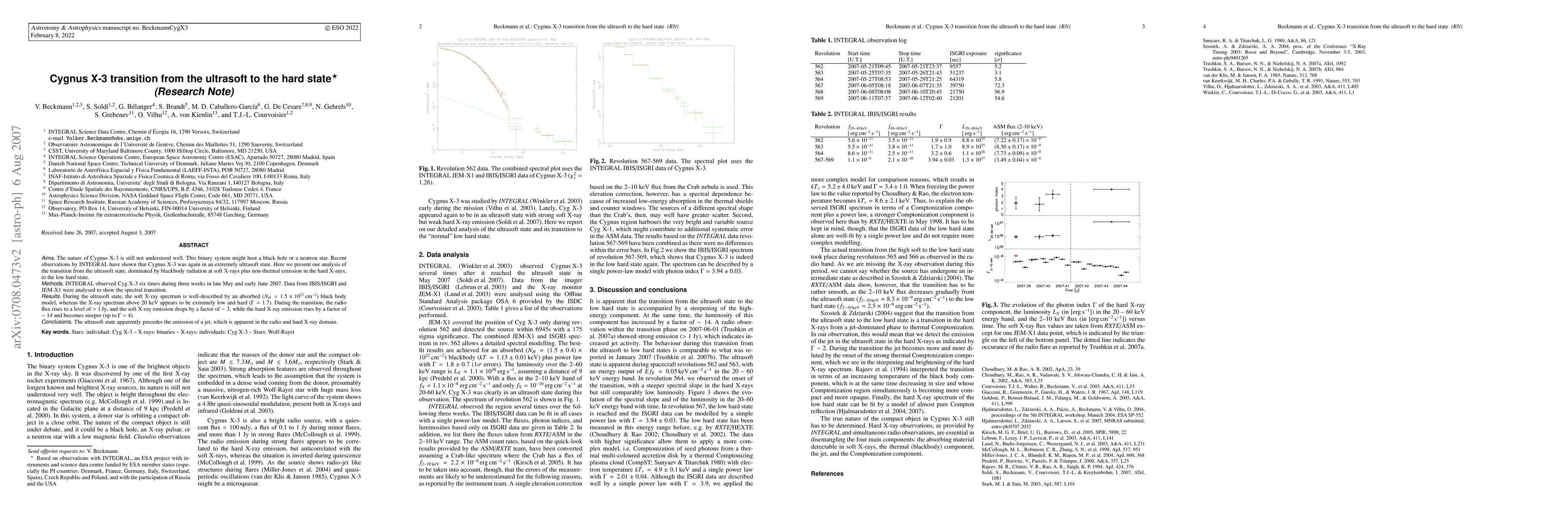 Aims: The nature of Cygnus X-3 is still not understood well. This binary system might host a black hole or a neutron star. Recent observations by INTEGRAL have shown that Cygnus X-3 was again in an extremely ultrasoft state. Here we present our analysis of the transition from the ultrasoft state, dominated by blackbody radiation at soft X-rays plus non-thermal emission in the hard X-rays, to the low hard state. Methods: INTEGRAL observed Cyg X-3 six times during three weeks in late May and early June 2007. Data from IBIS/ISGRI and JEM-X1 were analysed to show the spectral transition. Results: During the ultrasoft state, the soft X-ray spectrum is well-described by an absorbed (NH = 1.5E22 1/cm**2) black body model, whereas the X-ray spectrum above 20 keV appears to be extremely low and hard (Gamma = 1.7). During the transition, the radio flux rises to a level of >1 Jy, and the soft X-ray emission drops by a factor of 3, while the hard X-ray emission rises by a factor of 14 and becomes steeper (up to Gamma = 4). Conclusions: The ultrasoft state apparently precedes the emission of a jet, which is apparent in the radio and hard X-ray domain.