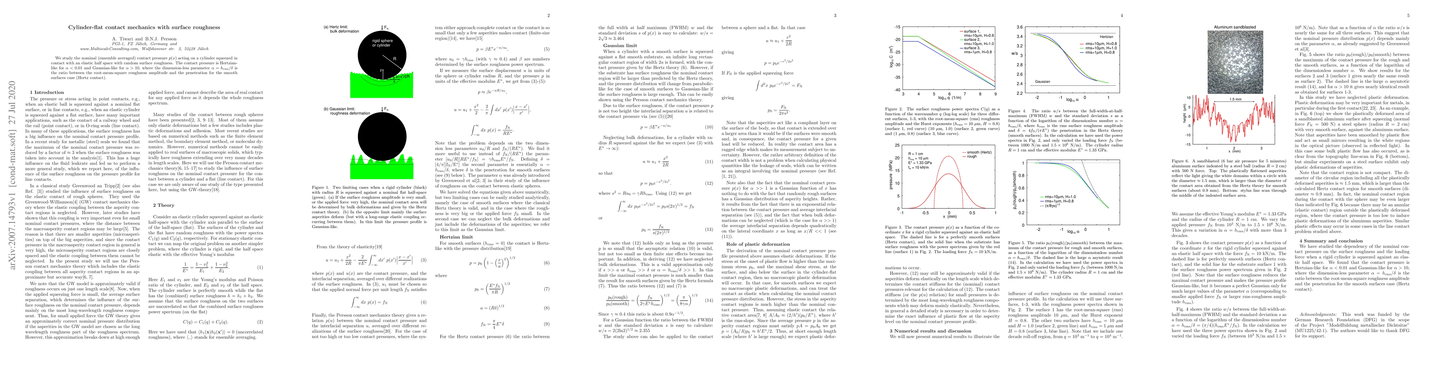 The paper presents a comprehensive numerical analysis of cylinder-flat contact mechanics with surface roughness, using Persson's contact mechanics theory, and provides a clear understanding of the transition from Hertzian to Gaussian contact pressure distributions as a function of the roughness parameter α.