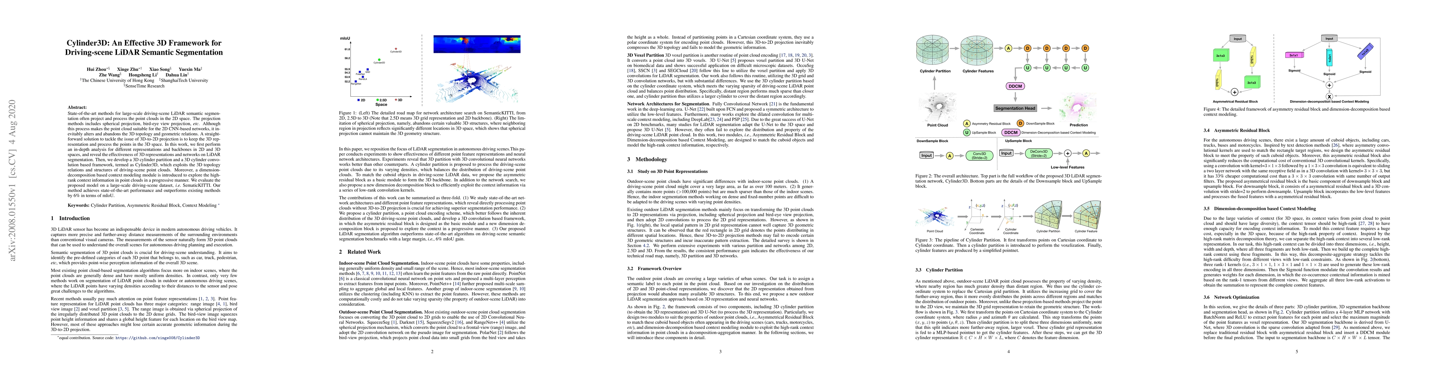 A new 3D framework called Cylinder3D is proposed for LiDAR semantic segmentation, leveraging 3D topology relations to achieve state-of-the-art performance on a large-scale driving-scene dataset.
