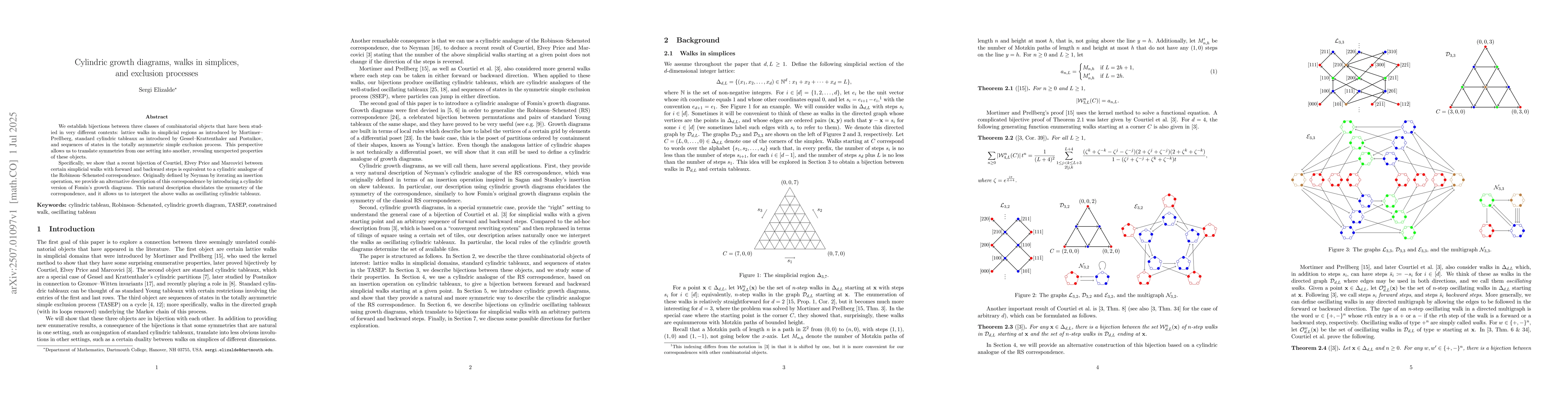We establish bijections between three classes of combinatorial objects that have been studied in very different contexts: lattice walks in simplicial regions as introduced by Mortimer--Prellberg, standard cylindric tableaux as introduced by Gessel--Krattenthaler and Postnikov, and sequences of states in the totally asymmetric simple exclusion process. This perspective allows us to translate symmetries from one setting into another, revealing unexpected properties of these objects. Specifically, we show that a recent bijection of Courtiel, Elvey Price and Marcovici between certain simplicial walks with forward and backward steps is equivalent to a cylindric analogue of the Robinson--Schensted correspondence. Originally defined by Neyman by iterating an insertion operation, we provide an alternative description of this correspondence by introducing a cylindric version of Fomin's growth diagrams. This natural description elucidates the symmetry of the correspondence, and it allows us to interpret the above walks as oscillating cylindric tableaux.