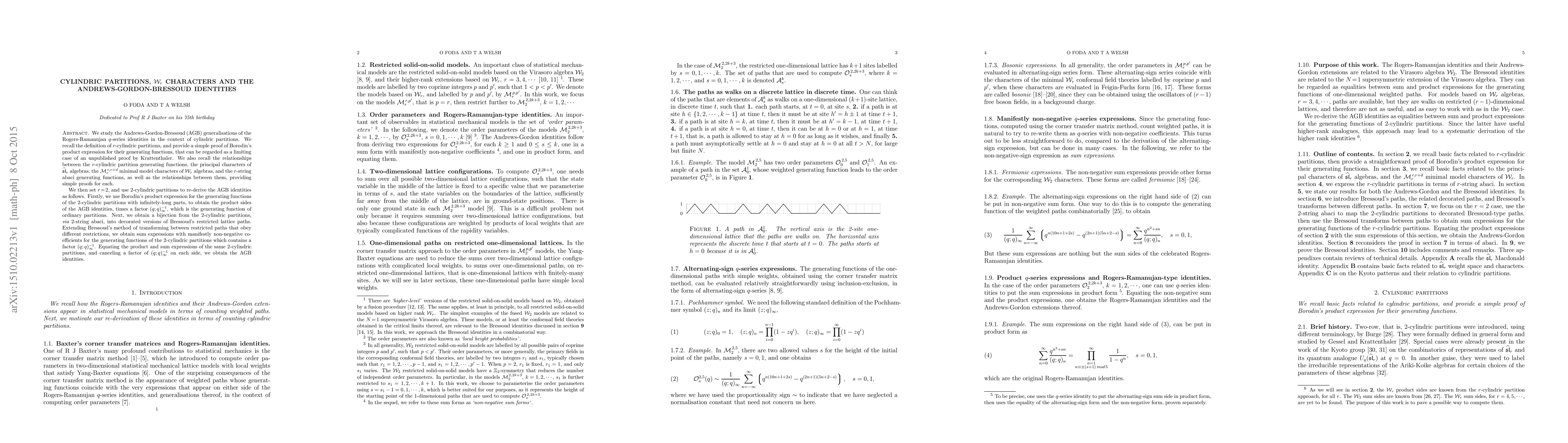 This paper explores the Andrews-Gordon-Bressoud identities through the lens of cylindric partitions, proving Borodin's product expression for their generating functions and establishing connections to affine sl_r algebras and W_r algebras. It derives the AGB identities using 2-cylindric partitions and decorated restricted lattice paths.