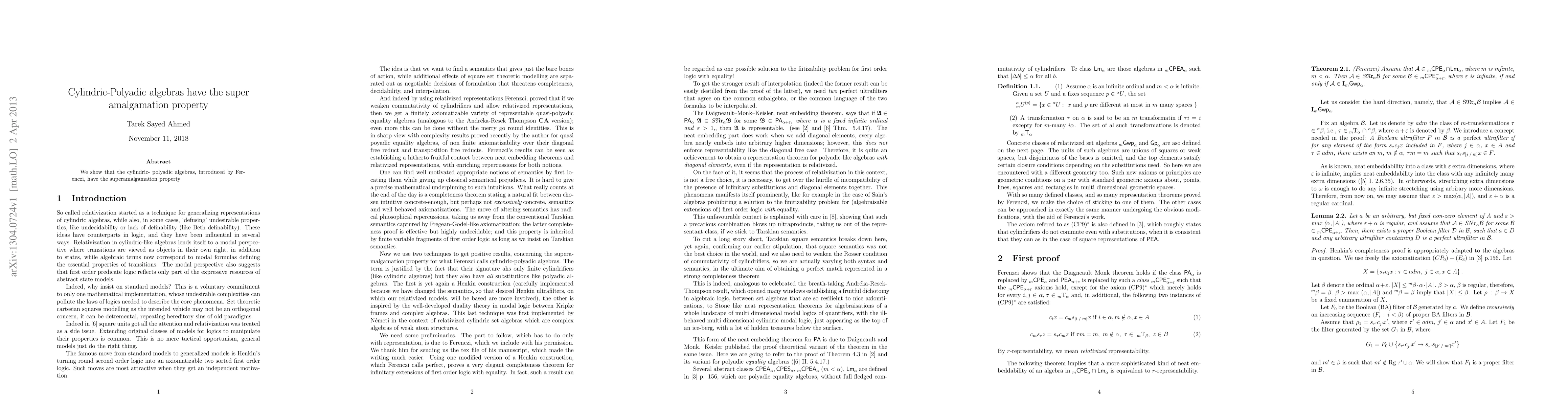 This paper demonstrates that cylindric polyadic algebras possess the superamalgamation property, providing two distinct proofs: one using Henkin construction and another leveraging duality theory in modal logic.