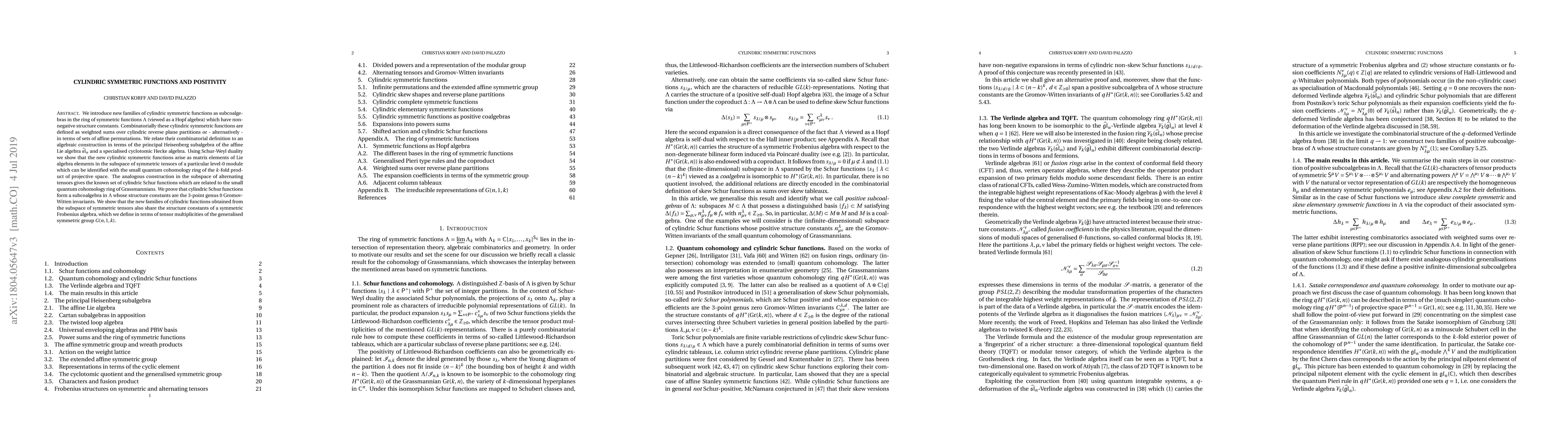 This paper introduces new families of cylindric symmetric functions with non-negative structure constants, defined via cylindric reverse plane partitions or affine permutations. It connects these functions to algebraic structures arising from the principal Heisenberg subalgebra and a specialised cyclotomic Hecke algebra, proving their relevance in the context of small quantum cohomology rings.