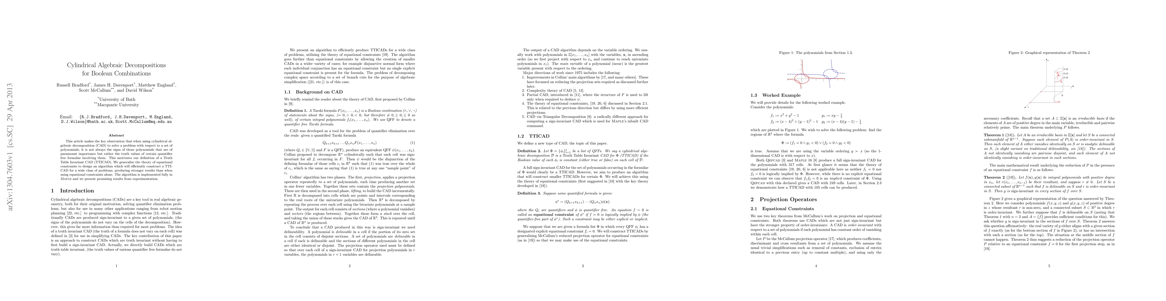 This article makes the key observation that when using cylindrical algebraic decomposition (CAD) to solve a problem with respect to a set of polynomials, it is not always the signs of those polynomials that are of paramount importance but rather the truth values of certain quantifier free formulae involving them. This motivates our definition of a Truth Table Invariant CAD (TTICAD). We generalise the theory of equational constraints to design an algorithm which will efficiently construct a TTICAD for a wide class of problems, producing stronger results than when using equational constraints alone. The algorithm is implemented fully in Maple and we present promising results from experimentation.