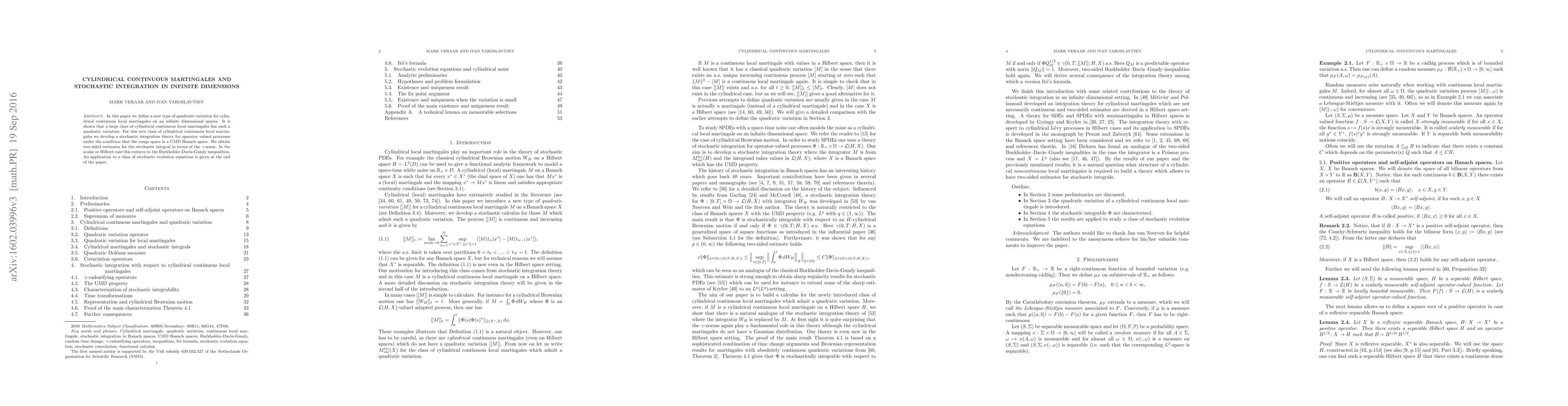 This paper introduces a novel quadratic variation for cylindrical continuous local martingales in infinite-dimensional spaces and develops a stochastic integration theory for operator-valued processes under UMD Banach space conditions. The results include two-sided estimates for the stochastic integral and applications to stochastic evolution equations.