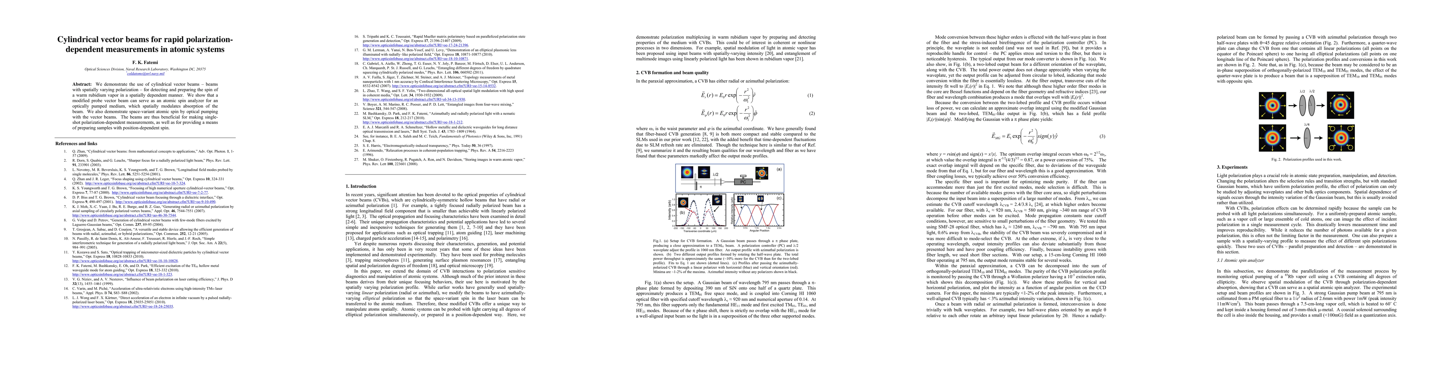 This paper demonstrates the use of cylindrical vector beams for spatially varying polarization to detect and prepare the spin of rubidium vapor, enabling rapid, singleshot polarization-dependent measurements and spatially modulated absorption, thus providing a method for preparing samples with position-dependent spin.