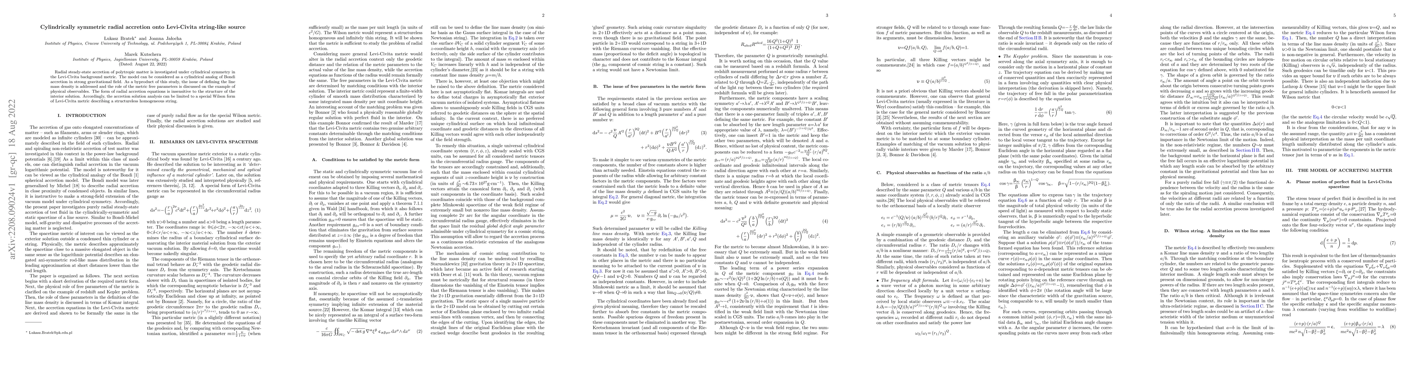This paper investigates cylindrically symmetric radial accretion of polytropic matter in a Levi-Civita background metric, analogous to Bondi accretion. It addresses the definition of line mass density and the role of metric parameters, concluding that radial accretion equations depend minimally on the interior solution structure.