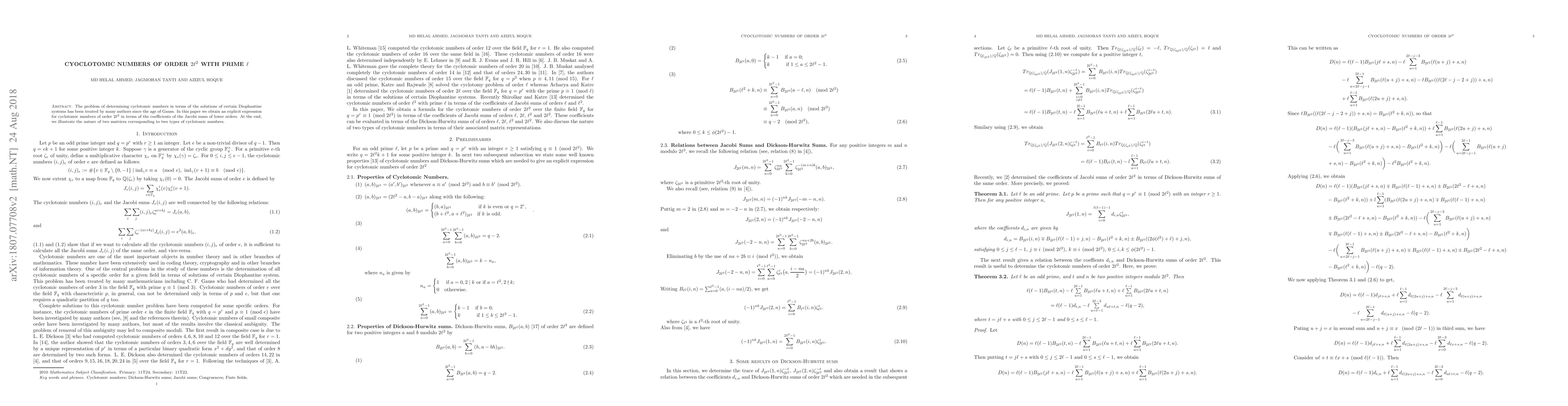 This paper presents an explicit expression for cyclotomic numbers of order 2l^2, derived from the coefficients of Jacobi sums of lower orders. It also analyzes two types of cyclotomic numbers through corresponding matrix representations.
