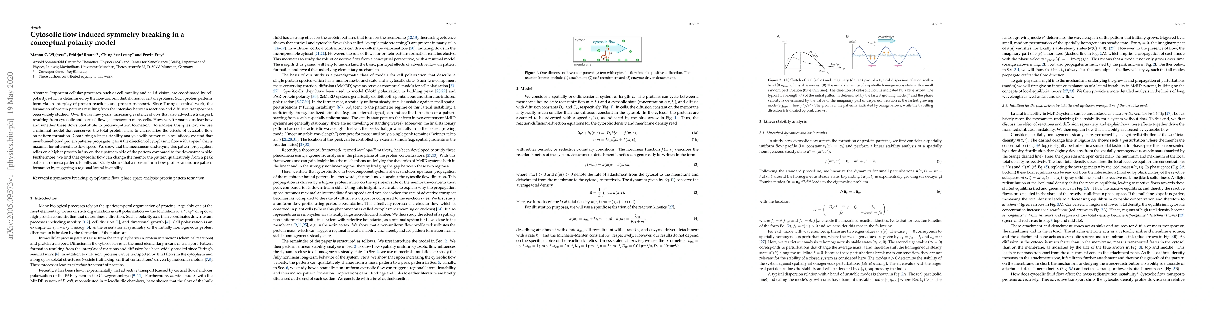 Important cellular processes, such as cell motility and cell division, are coordinated by cell polarity, which is determined by the non-uniform distribution of certain proteins. Such protein patterns form via an interplay of protein reactions and protein transport. Since Turing's seminal work, the formation of protein patterns resulting from the interplay between reactions and diffusive transport has been widely studied. Over the last few years, increasing evidence shows that also advective transport, resulting from cytosolic and cortical flows, is present in many cells. However, it remains unclear how and whether these flows contribute to protein-pattern formation. To address this question, we use a minimal model that conserves the total protein mass to characterize the effects of cytosolic flow on pattern formation. Combining a linear stability analysis with numerical simulations, we find that membrane-bound protein patterns propagate against the direction of cytoplasmic flow with a speed that is maximal for intermediate flow speed. We show that the mechanism underlying this pattern propagation relies on a higher protein influx on the upstream side of the pattern compared to the downstream side. Furthermore, we find that cytosolic flow can change the membrane pattern qualitatively from a peak pattern to a mesa pattern. Finally, our study shows that a non-uniform flow profile can induce pattern formation by triggering a regional lateral instability.
