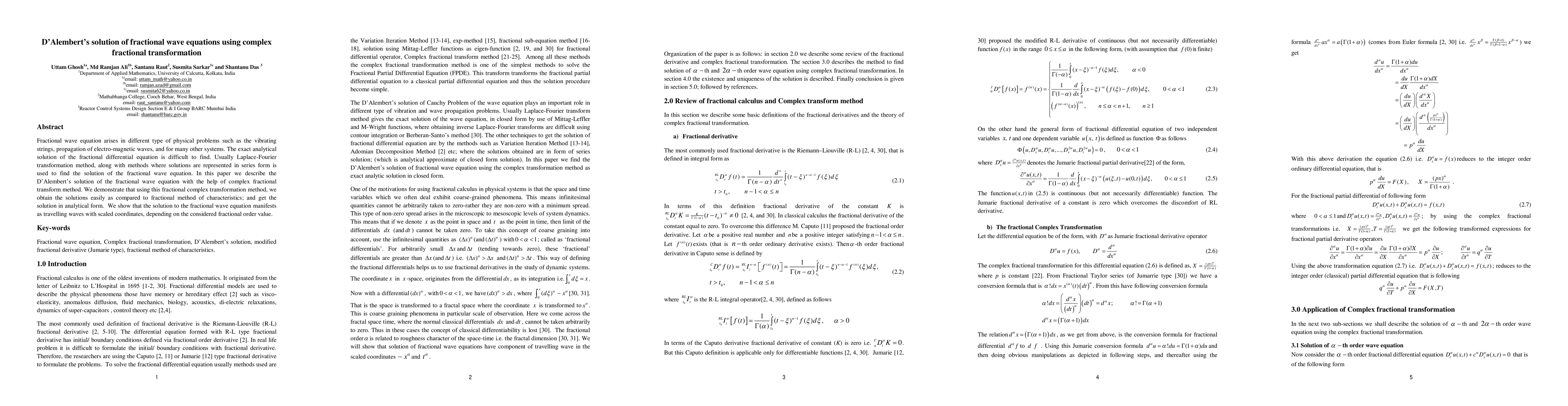 This paper presents D'Alembert's solution for fractional wave equations using the complex fractional transformation method, demonstrating that it yields analytical solutions more easily than traditional methods and reveals travelling waves with scaled coordinates based on the fractional order.