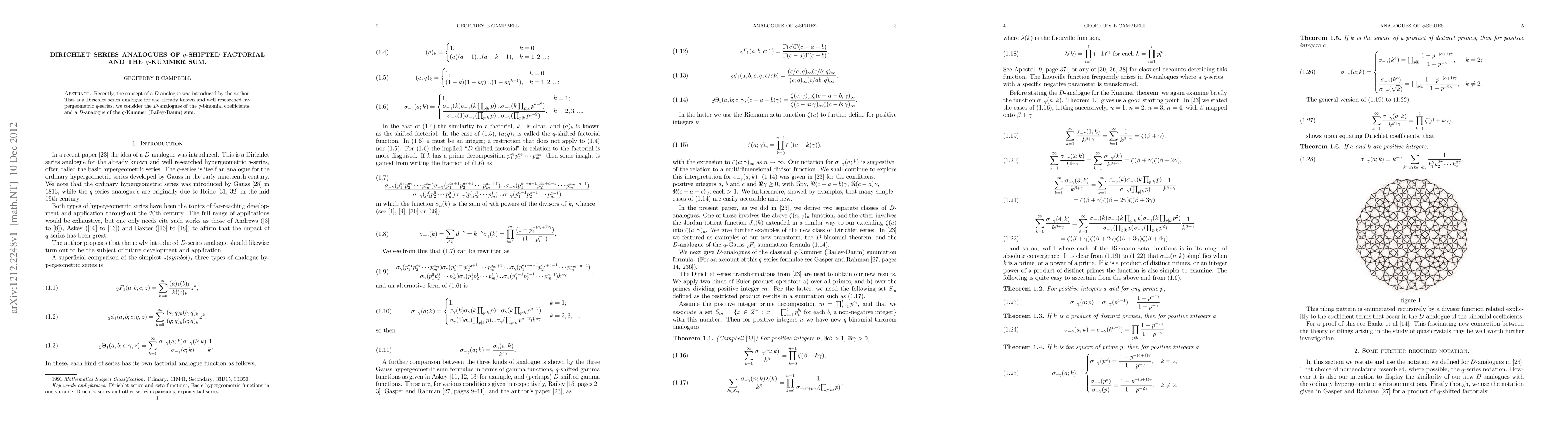 Recently, the concept of a D-analogue was introduced by the author. This is a Dirichlet series analogue for the already known and well researched hypergeometric q-series. we consider the D-analogues of the q-binomial coefficients, and a D-analogue of the q-Kummer (Bailey-Daum) sum.