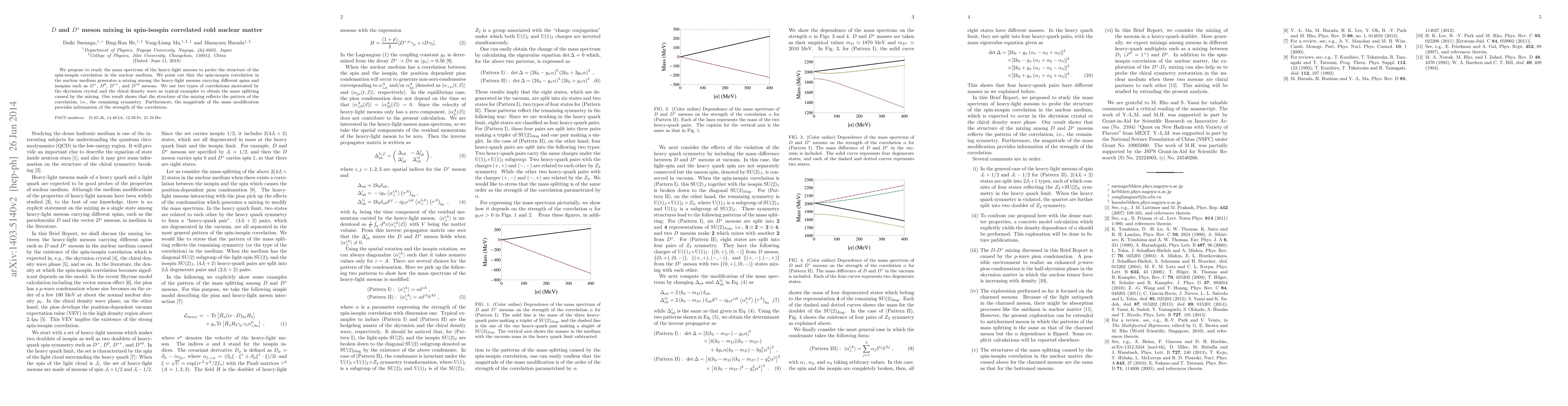 This paper explores the mass spectrum of $D$ and $D^{\ast}$ mesons to investigate spin-isospin correlations in cold nuclear matter. The study reveals that these correlations induce mixing among $D^+$, $D^0$, $D^{\ast +}$, and $D^{\ast 0}$ mesons, with the mixing's structure and magnitude reflecting the underlying correlation pattern and its strength.