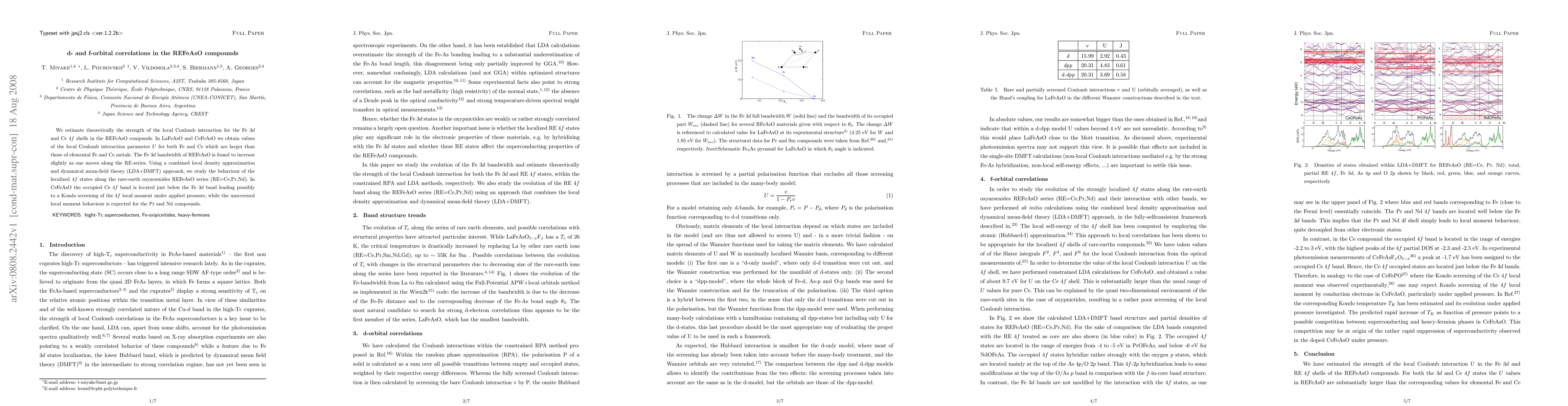 The paper presents a combined theoretical approach using constrained RPA and LDA methods for estimating local Coulomb interactions, and LDA+DMFT for studying the evolution of localized 4f states in REFeAsO compounds.