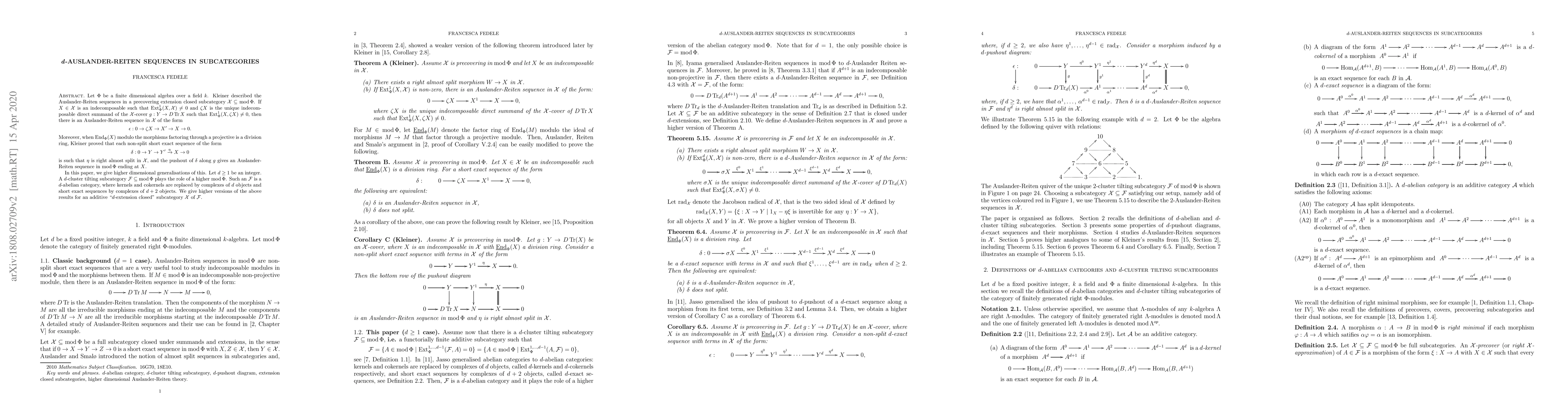 Let $\Phi$ be a finite dimensional algebra over a field $k$. Kleiner described the Auslander-Reiten sequences in a precovering extension closed subcategory $\mathcal{X}\subseteq$ mod $\Phi$. If $X\in\mathcal{X}$ is an indecomposable such that Ext$_{\Phi}^1(X,\mathcal{X})\neq 0$ and $\zeta X$ is the unique indecomposable direct summand of the $\mathcal{X}$-cover $g:Y\rightarrow D$Tr$X$ such that Ext$_{\Phi}^1(X,\zeta X)\neq 0$, then there is an Auslander-Reiten sequence in $\mathcal{X}$ of the form \begin{align*} \epsilon: 0\rightarrow \zeta X\rightarrow X'\rightarrow X\rightarrow 0. \end{align*} Moreover, when End$_\Phi (X)$ modulo the morphisms factoring through a projective is a division ring, Kleiner proved that each non-split short exact sequence of the form \begin{align*} \delta: 0\rightarrow Y\rightarrow Y'\xrightarrow{\eta} X\rightarrow 0 \end{align*} is such that $\eta$ is right almost split in $\mathcal{X}$, and the pushout of $\delta$ along $g$ gives an Auslander-Reiten sequence in mod $\Phi$ ending at $X$. In this paper, we give higher dimensional generalisations of this. Let $d\geq 1$ be an integer. A $d$-cluster tilting subcategory $\mathcal{F}\subseteq$ mod $\Phi$ plays the role of a higher mod $\Phi$. Such an $\mathcal{F}$ is a $d$-abelian category, where kernels and cokernels are replaced by complexes of $d$ objects and short exact sequences by complexes of $d+2$ objects. We give higher versions of the above results for an additive "$d$-extension closed" subcategory $\mathcal{X}$ of $\mathcal{F}$.