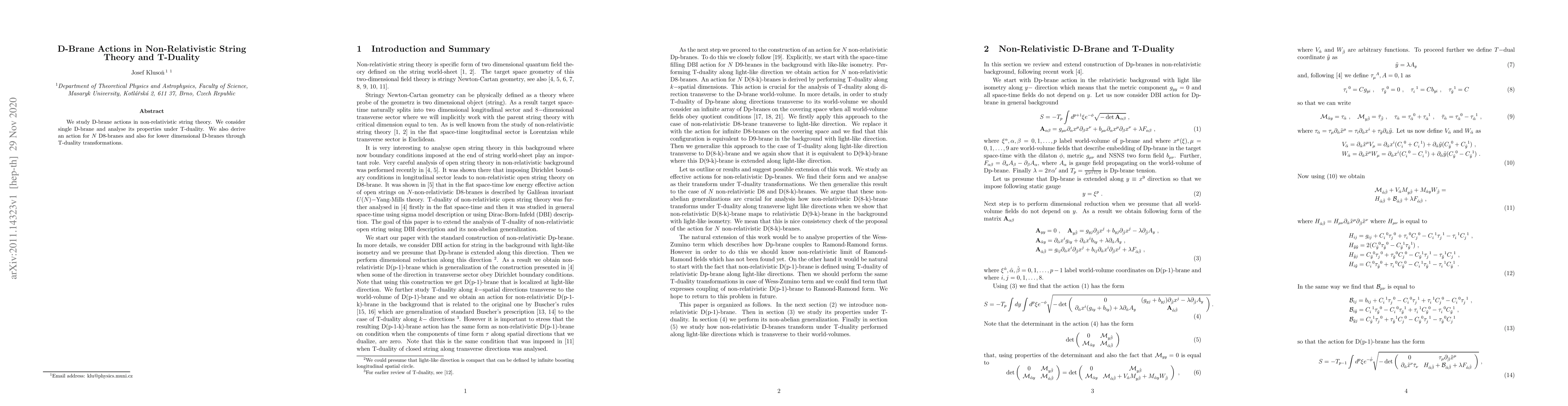 This paper investigates D-brane actions within non-relativistic string theory, focusing on single D-branes and their properties under T-duality. It also derives actions for N D8-branes and lower-dimensional D-branes via T-duality transformations.