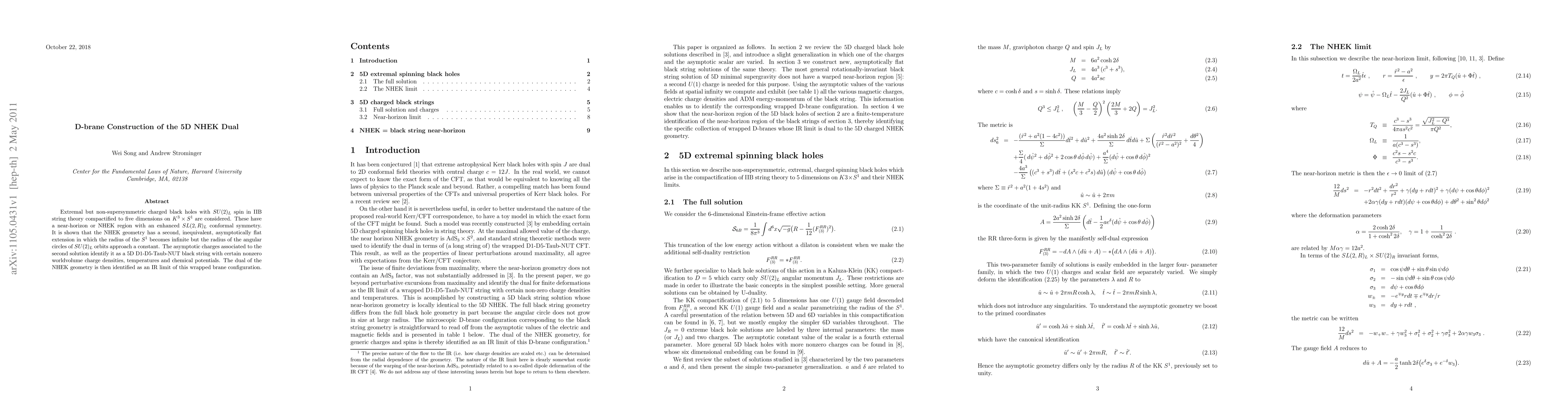 This paper explores the D-brane construction of the dual of the near-horizon extremal black hole geometry (NHEK) in 5D IIB string theory, revealing an asymptotically flat extension of the NHEK with enhanced symmetry. The dual is identified as an IR limit of a 5D D1-D5-Taub-NUT black string configuration.