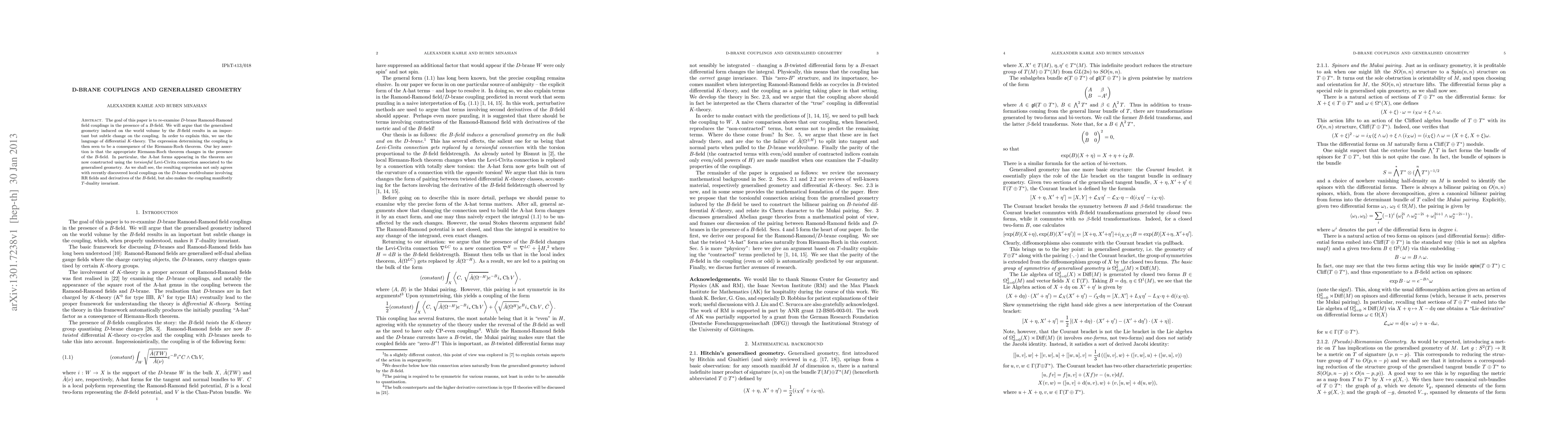 The goal of this paper is to re-examine D-brane Ramond-Ramond field couplings in the presence of a B-field. We will argue that the generalised geometry induced on the world volume by the B-field results in an important but subtle change on the coupling. In order to explain this, we use the language of differential K-theory. The expression determining the coupling is then seen to be a consequence of the Riemann-Roch theorem. Our key assertion is that the appropriate Riemann-Roch theorem changes in the presence of the B-field. In particular, the A-hat forms appearing in the theorem are now constructed using the torsionful Levi-Civita connection associated to the generalised geometry. As we shall see, the resulting expression not only agrees with recently discovered local couplings on the D-brane worldvolume involving RR fields and derivatives of the B-field, but also makes the coupling manifestly T-duality invariant.
