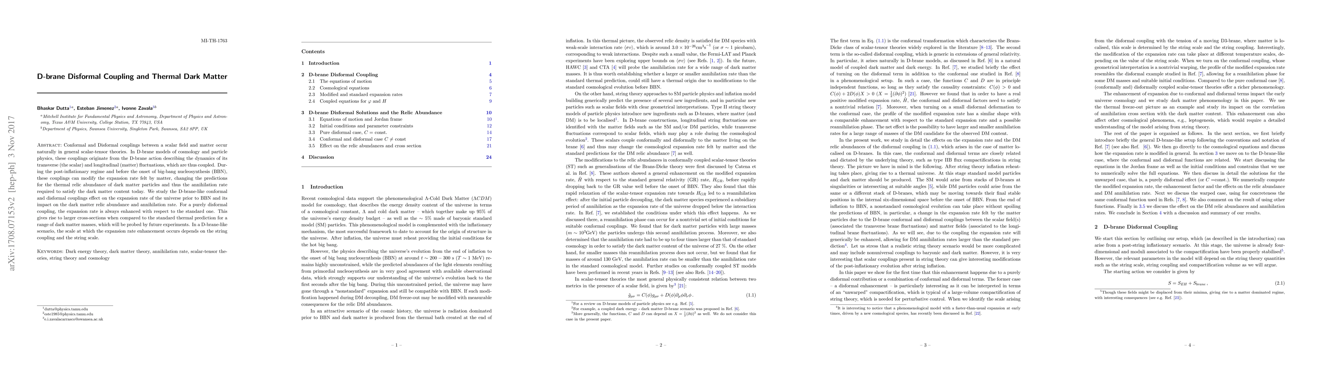 This paper investigates the effects of conformal and disformal couplings between a scalar field and matter in D-brane models, focusing on their influence on the expansion rate before big-bang nucleosynthesis. It finds that disformal coupling enhances the expansion rate, leading to larger dark matter cross-sections and annihilation rates, which could be detected by future experiments.