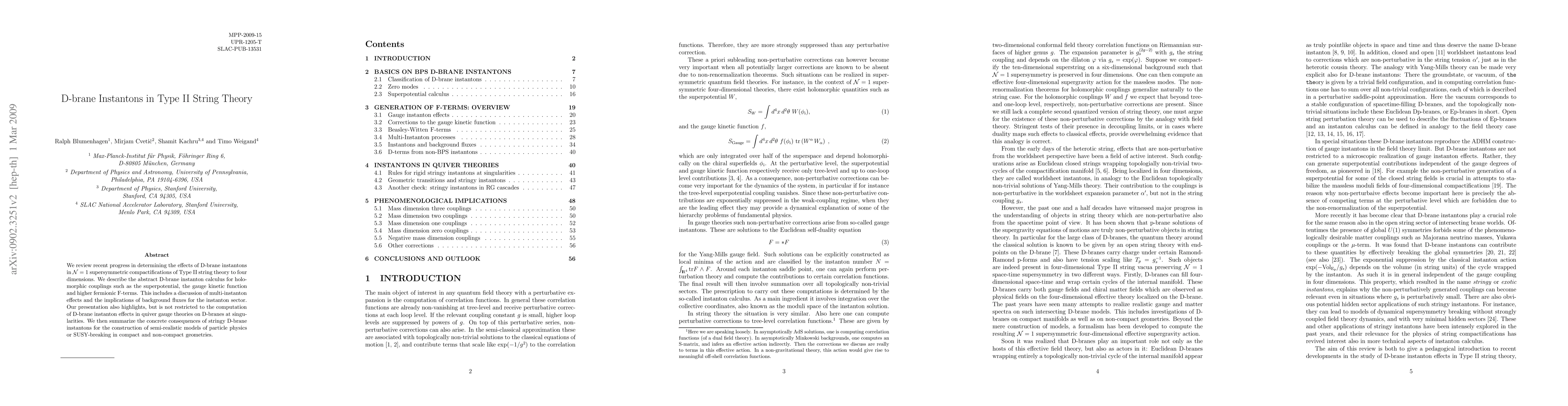 This paper reviews advancements in understanding D-brane instantons' impact on N=1 supersymmetric Type II string theory compactifications, focusing on holomorphic couplings and multi-instanton effects, and discusses their implications for constructing realistic particle physics models and SUSY-breaking.