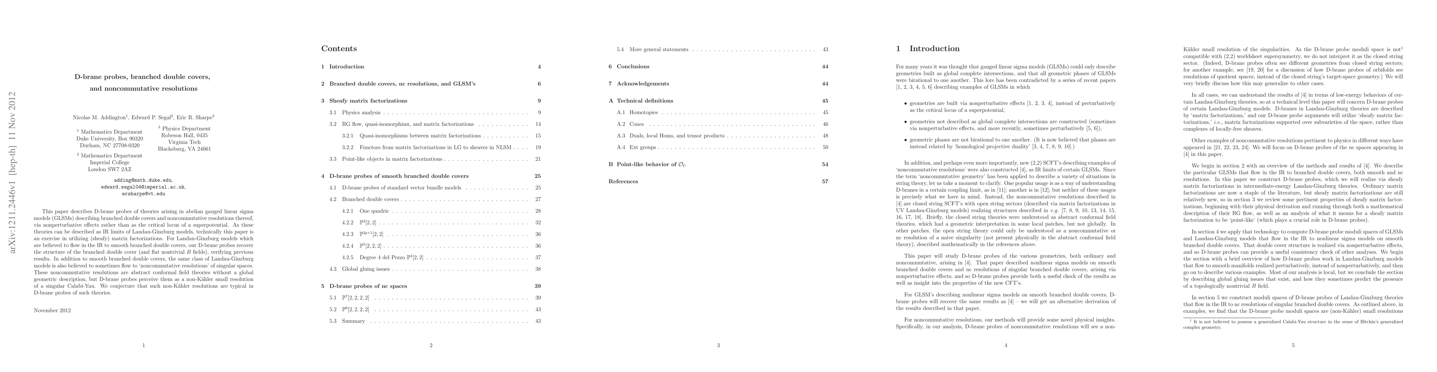This paper uses D-brane probes to explore abelian gauged linear sigma models (GLSMs) associated with branched double covers and noncommutative resolutions, verifying branched cover structures and proposing that non-Kahler small resolutions are typical in D-brane probes of these theories.