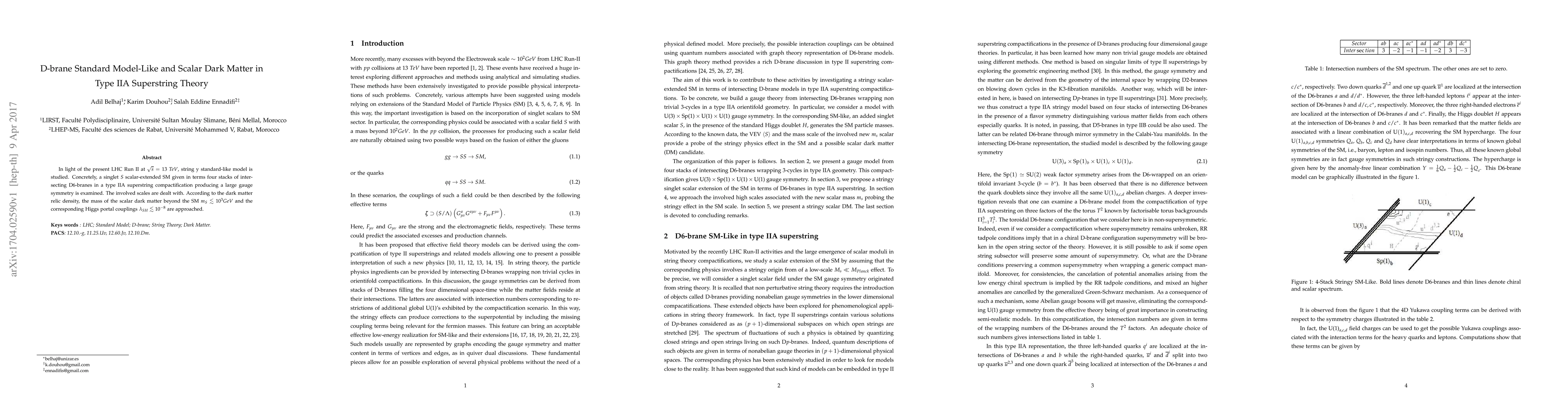 In light of the present LHC Run II at $\sqrt{s}=13$ $TeV$, string y standard-like model is studied. Concretely, a singlet $S $ scalar-extended SM given in terms four stacks of intersecting D6-branes in a type IIA superstring compactification producing a large gauge symmetry is examined. The involved scales are dealt with. According to the dark matter relic density, the mass of the scalar dark matter beyond the SM $m_{S}\lesssim 10^{3}GeV$ and the corresponding Higgs portal couplings $\lambda _{SH}\lesssim 10^{-8}$ are approached.
