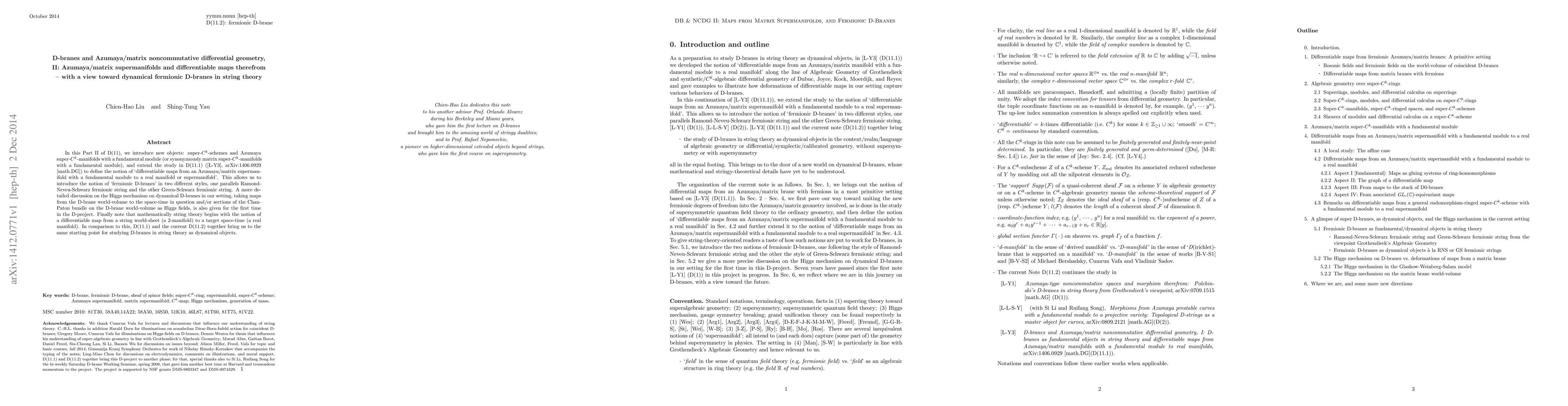 In this Part II of D(11), we introduce new objects: super-$C^k$-schemes and Azumaya super-$C^k$-manifolds with a fundamental module (or, synonymously, matrix super-$C^k$-manifolds with a fundamental module), and extend the study in D(11.1) ([L-Y3], arXiv:1406.0929 [math.DG]) to define the notion of `differentiable maps from an Azumaya/matrix supermanifold with a fundamental module to a real manifold or supermanifold'. This allows us to introduce the notion of `fermionic D-branes' in two different styles, one parallels Ramond-Neveu-Schwarz fermionic string and the other Green-Schwarz fermionic string. A more detailed discussion on the Higgs mechanism on dynamical D-branes in our setting, taking maps from the D-brane world-volume to the space-time in question and/or sections of the Chan-Paton bundle on the D-brane world-volume as Higgs fields, is also given for the first time in the D-project. Finally note that mathematically string theory begins with the notion of a differentiable map from a string world-sheet (a $2$-manifold) to a target space-time (a real manifold). In comparison to this, D(11.1) and the current D(11.2) together bring us to the same starting point for studying D-branes in string theory as dynamical objects.
