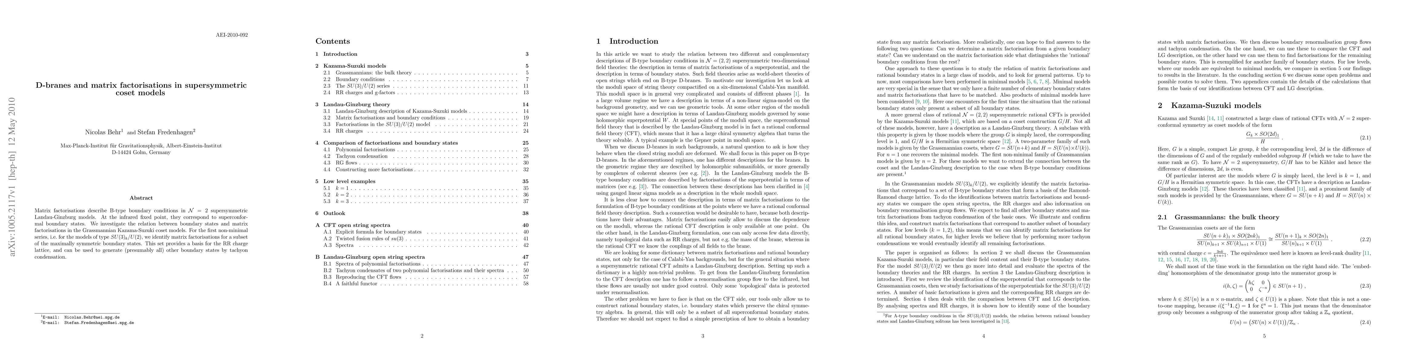 This paper explores the connection between matrix factorisations and boundary states in supersymmetric coset models, specifically focusing on the SU(3)_k/U(2) Kazama-Suzuki model. It identifies matrix factorisations for a subset of maximally symmetric boundary states, which serve as a basis for the RR charge lattice and can generate other boundary states via tachyon condensation.
