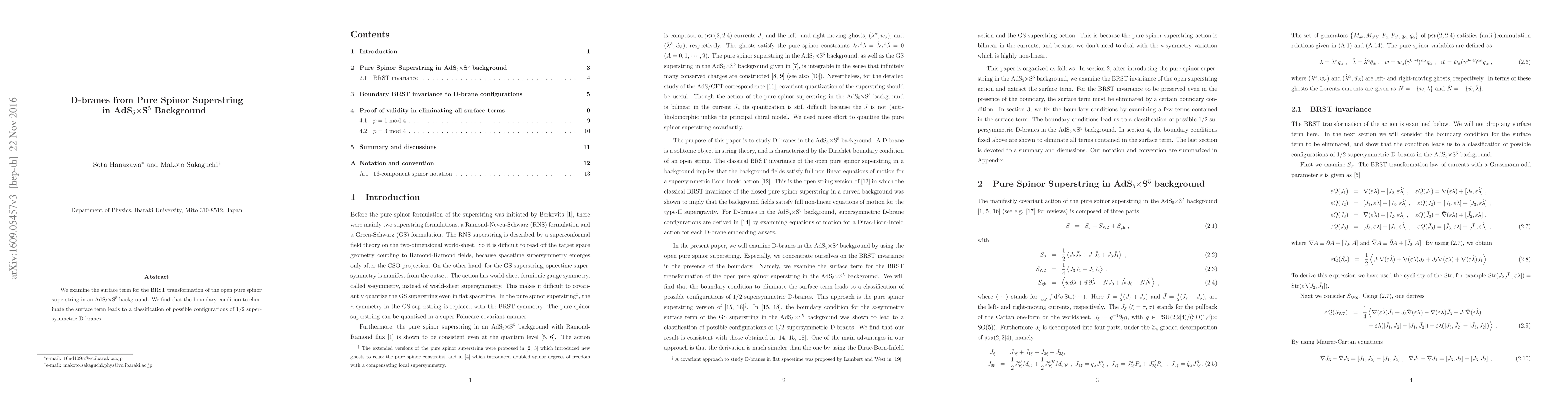This paper investigates the BRST transformation surface term for the open pure spinor superstring in an AdS_5 x S^5 background, revealing that the boundary condition needed to eliminate the surface term classifies 1/2 supersymmetric D-branes configurations.