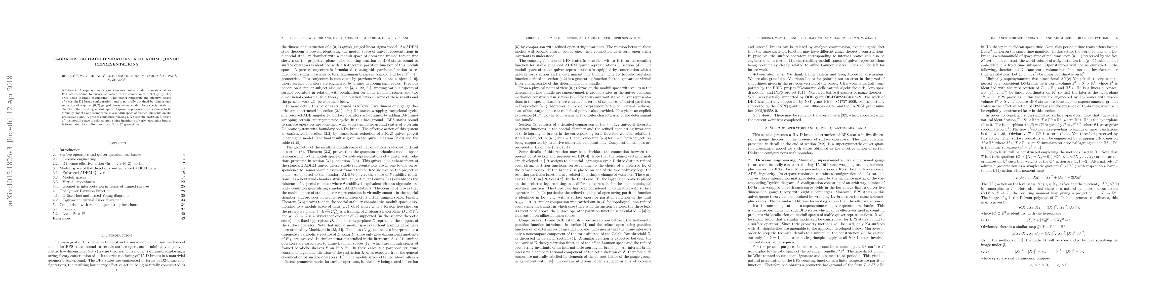 A supersymmetric quantum mechanical model is constructed for BPS states bound to surface operators in five dimensional SU(r) gauge theories using D-brane engineering. This model represents the effective action of a certain D2-brane configuration, and is naturally obtained by dimensional reduction of a quiver $(0,2)$ gauged linear sigma model. In a special stability chamber, the resulting moduli space of quiver representations is shown to be virtually smooth and isomorphic to a moduli space of framed quotients on the projective plane. A precise conjecture relating a K-theoretic partition function of this moduli space to refined open string invariants of toric lagrangian branes is formulated for conifold and local P^1 x P^1 geometries.