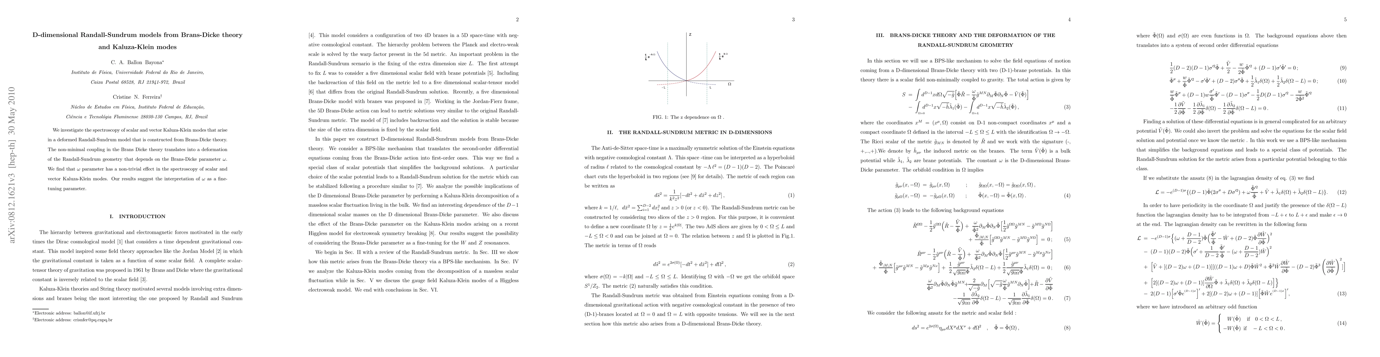 This paper explores the spectroscopy of scalar and vector Kaluza-Klein modes in a D-dimensional Randall-Sundrum model derived from Brans-Dicke theory, revealing that the Brans-Dicke parameter $\omega$ significantly influences these modes and can be interpreted as a fine-tuning parameter.