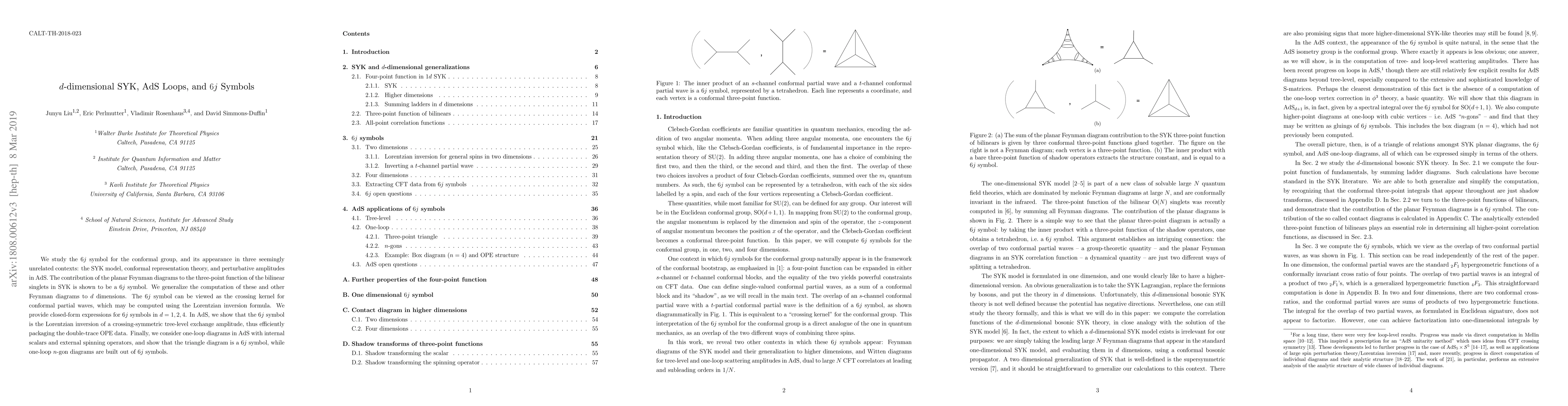 This paper explores the $6j$ symbol in various physical contexts, including the SYK model, conformal representation theory, and AdS space. It reveals that $6j$ symbols arise in planar Feynman diagrams for SYK, as crossing kernels for conformal partial waves, and in AdS amplitudes, encapsulating double-trace OPE data efficiently.