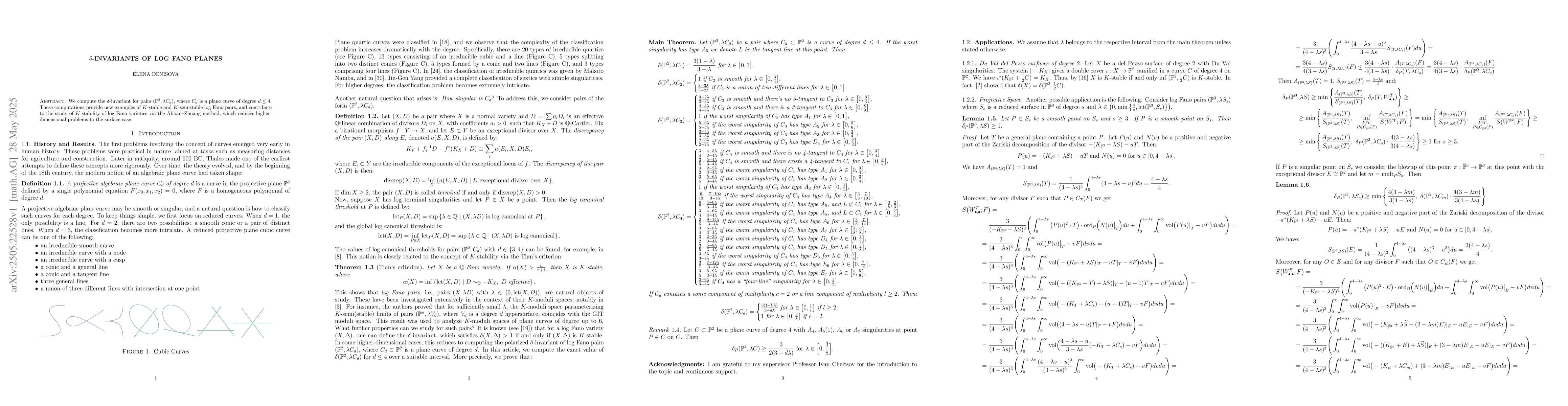 The research computes the $\delta$-invariant for pairs $(\\mathbb{P}^2, \\lambda C_d)$, where $C_d$ is a plane curve of degree $d \\leq 4$.