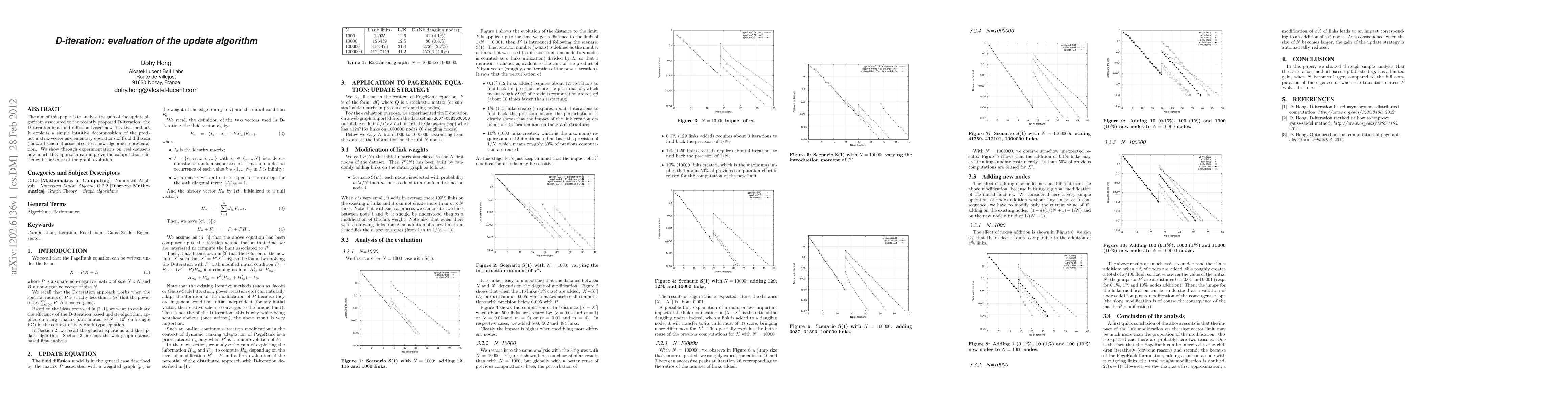 This paper evaluates the update algorithm of the D-iteration, a novel iterative method based on fluid diffusion, demonstrating its improved computational efficiency through experiments on evolving graph datasets.