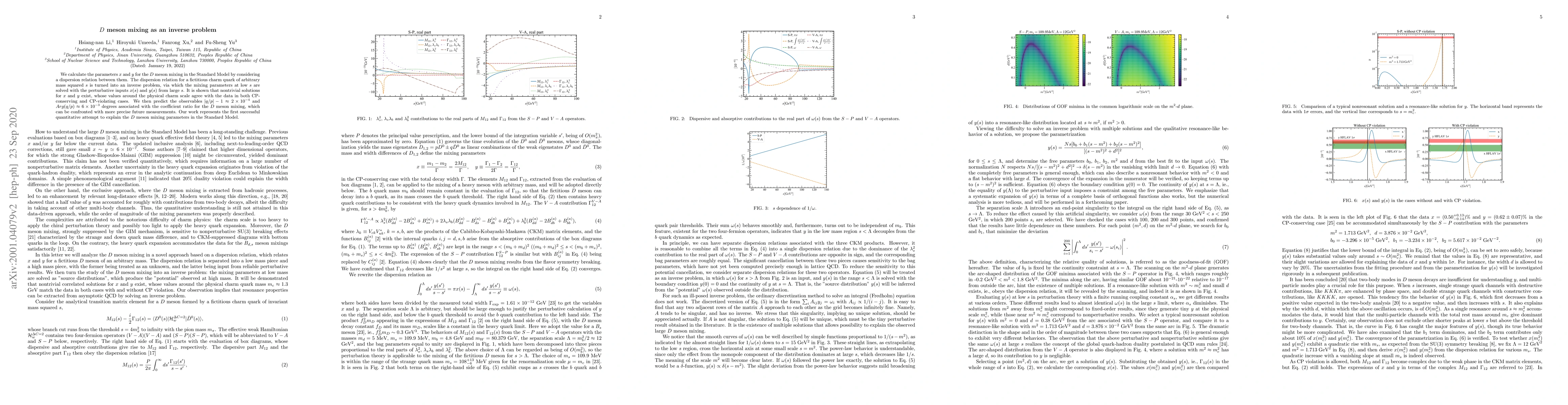 We calculate the parameters $x$ and $y$ for the $D$ meson mixing in the Standard Model by considering a dispersion relation between them. The dispersion relation for a fictitious charm quark of arbitrary mass squared $s$ is turned into an inverse problem, via which the mixing parameters at low $s$ are solved with the perturbative inputs $x(s)$ and $y(s)$ from large $s$. It is shown that nontrivial solutions for $x$ and $y$ exist, whose values around the physical charm scale agree with the data in both CP-conserving and CP-violating cases. We then predict the observables $|q/p|-1\approx 2\times 10^{-4}$ and $Arg(q/p)\approx 6\times 10^{-3}$ degrees associated with the coefficient ratio for the $D$ meson mixing, which can be confronted with more precise future measurements. Our work represents the first successful quantitative attempt to explain the $D$ meson mixing parameters in the Standard Model.