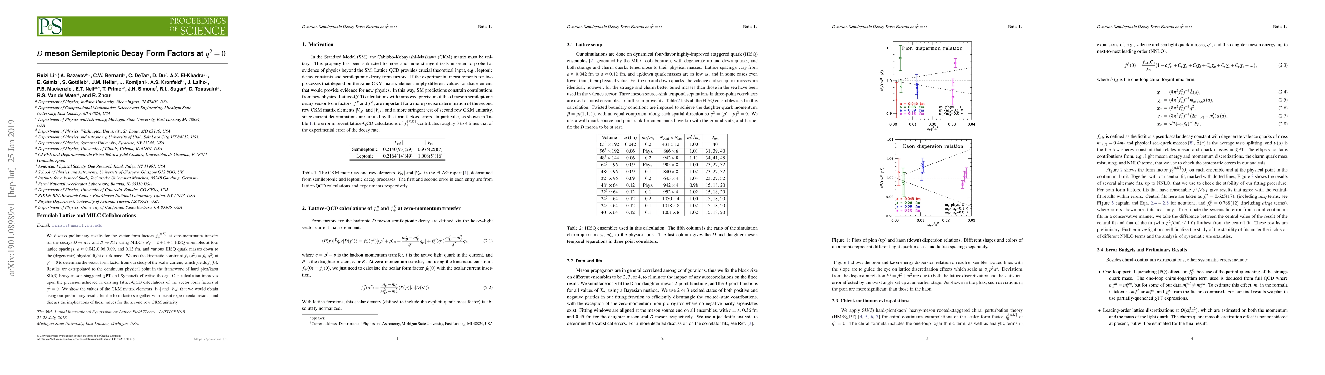 This work presents novel results for f\pi(q^2=0) and f_K(q^2=0) using a new set of ensembles.
