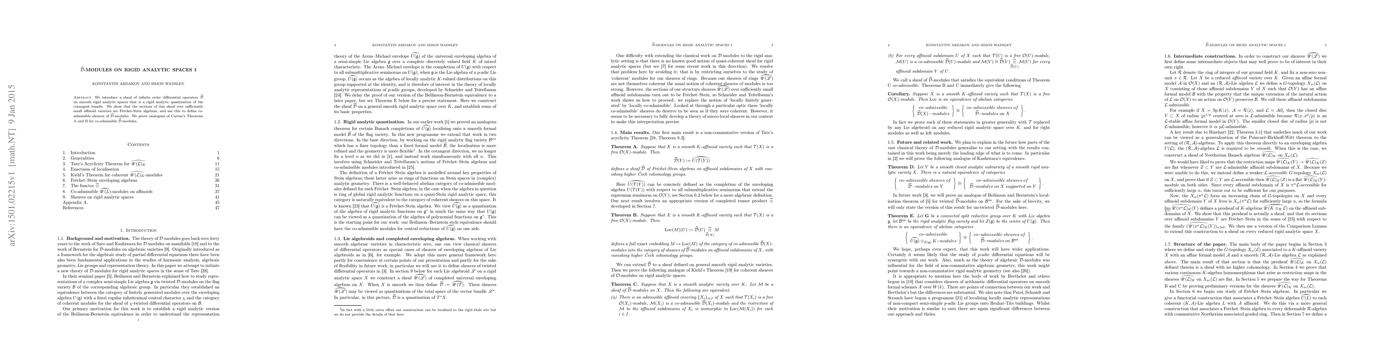 We introduce a sheaf of infinite order differential operators D-cap on smooth rigid analytic spaces that is a rigid analytic quantisation of the cotangent bundle. We show that the sections of this sheaf over sufficiently small affinoid varieties are Fr\'echet-Stein algebras, and use this to define co-admissible sheaves of D-cap-modules. We prove analogues of Cartan's Theorems A and B for co-admissible D-cap-modules.