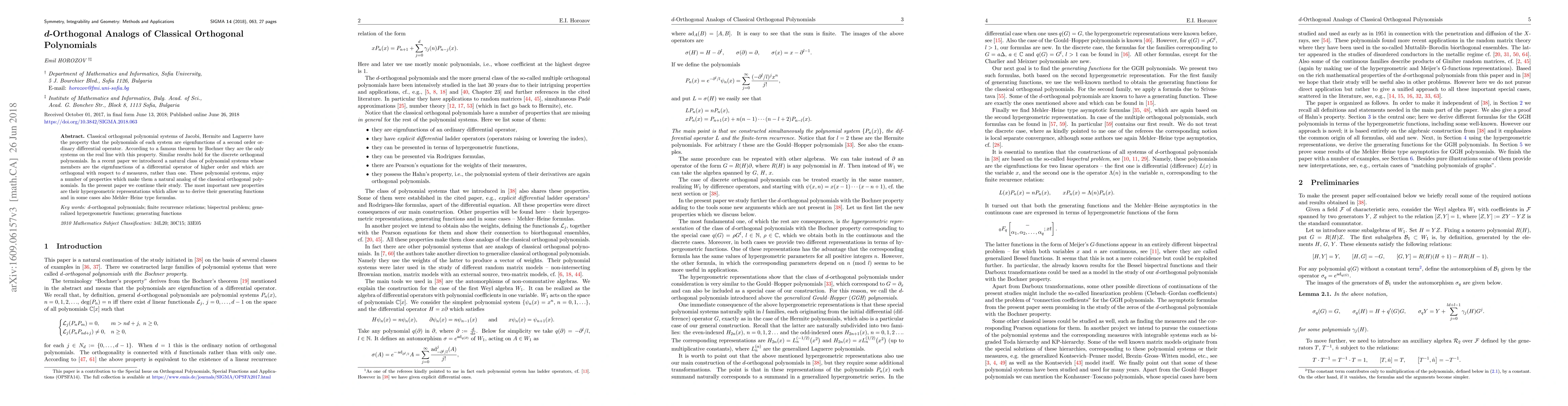 Classical orthogonal polynomial systems of Jacobi, Hermite and Laguerre have the property that the polynomials of each system are eigenfunctions of a second order ordinary differential operator. According to a famous theorem by Bochner they are the only systems on the real line with this property. Similar results hold for the discrete orthogonal polynomials. In a recent paper we introduced a natural class of polynomial systems whose members are the eigenfunctions of a differential operator of higher order and which are orthogonal with respect to d measures, rather than one. These polynomial systems, enjoy a number of properties which make them a natural analog of the classical orthogonal polynomials. In the present paper we continue their study. The most important new properties are their hypergeometric representations which allow us to derive their generating functions and in some cases also Mehler-Heine type formulas.