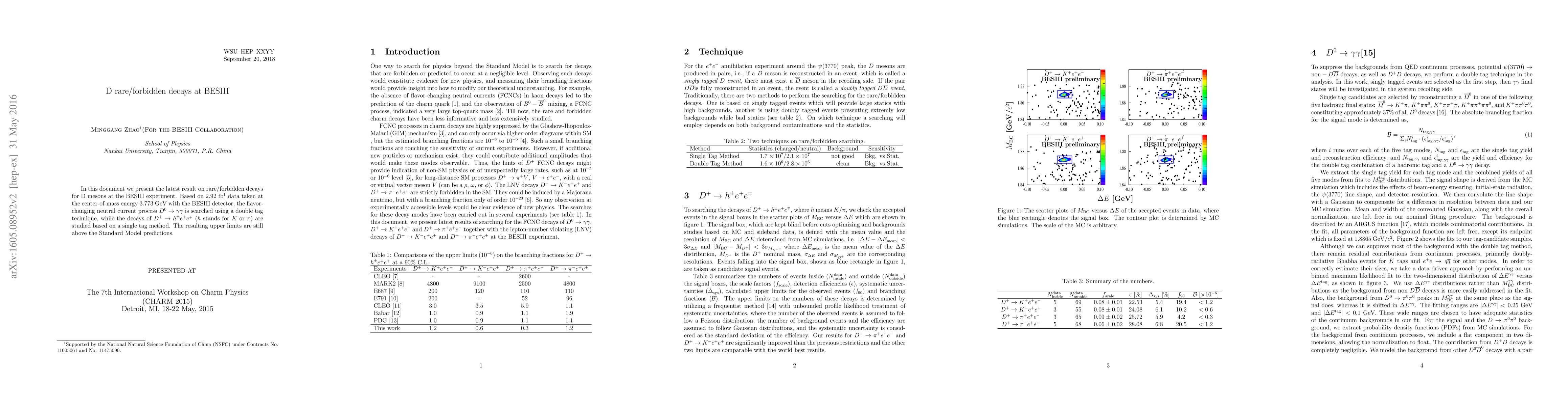 The BESIII experiment reports on rare/forbidden decays of D mesons using 2.92/fb data at 3.773 GeV, finding upper limits for neutral D decays into two gammas and charged D decays into a charged kaon/pion plus two leptons, which remain above Standard Model predictions.