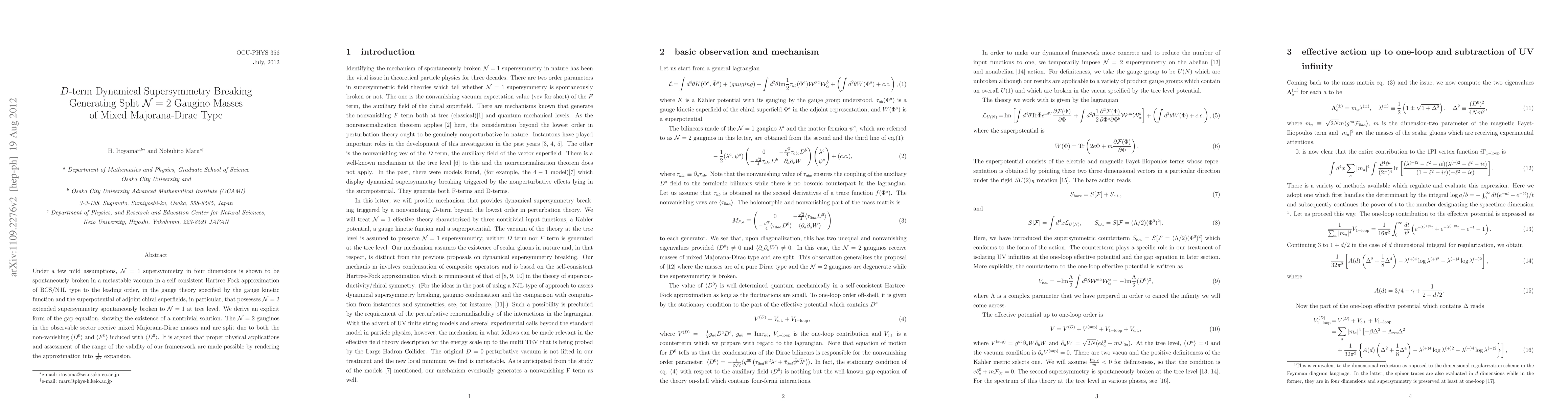 Under a few mild assumptions, N=1 supersymmetry in four dimensions is shown to be spontaneously broken in a self-consistent Hartree-Fock approximation of BCS/NJL type to one-loop off-shell, in the gauge theory specified by the gauge kinetic function and the superpotential of adjoint chiral superfields, in particular, that possesses N=2 extended supersymmetry spontaneously broken to N=1 at tree level. The N=2 gauginos receive mixed Majorana-Dirac masses and are split. We derive an explicit form of the gap equation, showing the existence of a nontrivial solution.