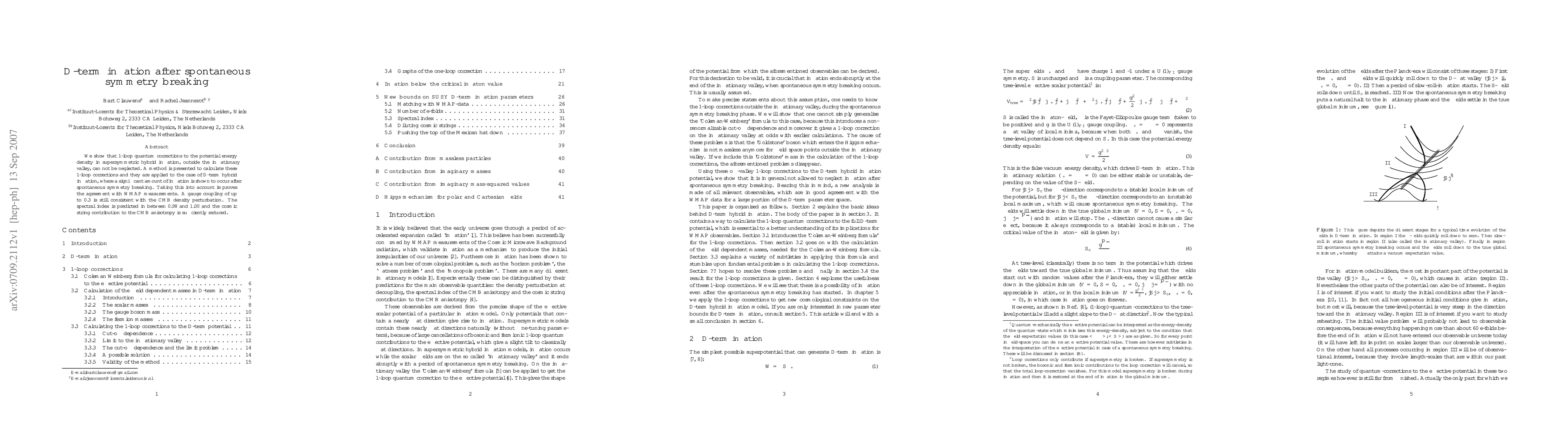This paper demonstrates that 1-loop quantum corrections significantly affect D-term hybrid inflation after spontaneous symmetry breaking, improving alignment with WMAP measurements. The analysis shows that inflation can continue post-breaking, with a gauge coupling up to 0.3 remaining consistent with CMB density perturbations.