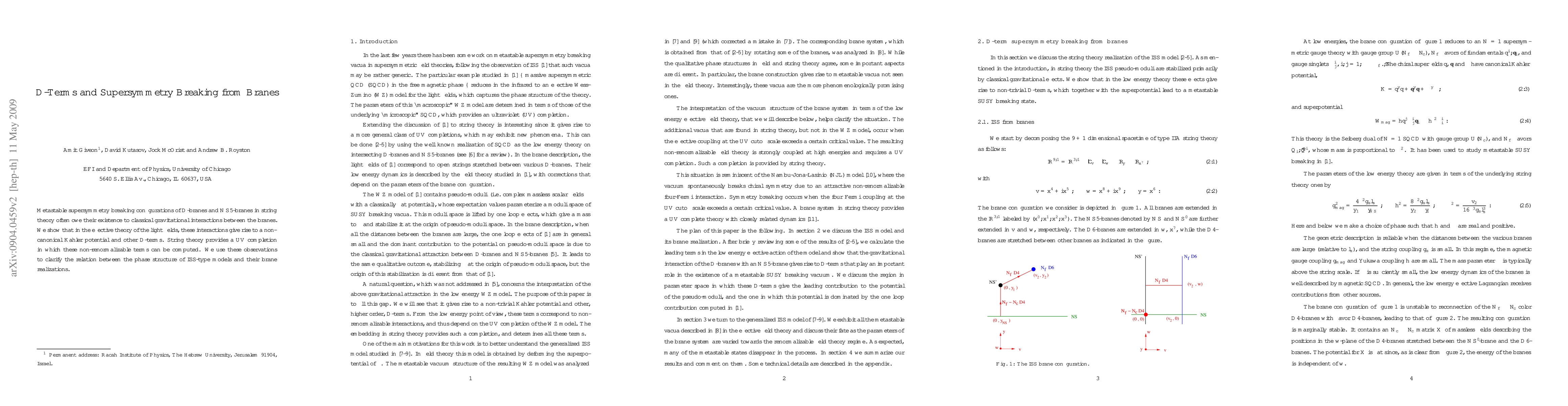 Metastable supersymmetry breaking configurations of D-branes and NS5-branes in string theory often owe their existence to classical gravitational interactions between the branes. We show that in the effective theory of the light fields, these interactions give rise to a non-canonical K\"ahler potential and other D-terms. String theory provides a UV completion in which these non-renormalizable terms can be computed. We use these observations to clarify the relation between the phase structure of ISS-type models and their brane realizations.
