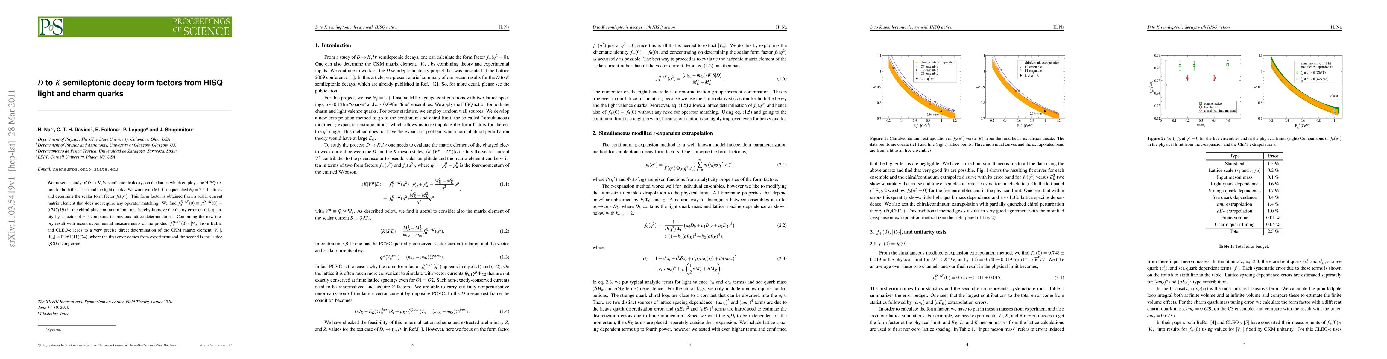 We present a study of $D \rightarrow K, l \nu$ semileptonic decays on the lattice which employs the HISQ action for both the charm and the light quarks. We work with MILC unquenched $N_f = 2 + 1$ lattices and determine the scalar form factor $f_0(q^2)$. This form factor is obtained from a scalar current matrix element that does not require any operator matching. We find $f^{D \rightarrow K}_0(0) \equiv f^{D \rightarrow K}_+(0) = 0.747(19)$ in the chiral plus continuum limit and hereby improve the theory error on this quantity by a factor of $\sim$4 compared to previous lattice determinations. Combining the new theory result with recent experimental measurements of the product $f^{D \rightarrow K}_+(0) * |V_{cs}| $ from BaBar and CLEO-c leads to a very precise direct determination of the CKM matrix element $|V_{cs}| $, $|V_{cs}| = 0.961(11)(24)$, where the first error comes from experiment and the second is the lattice QCD theory error.