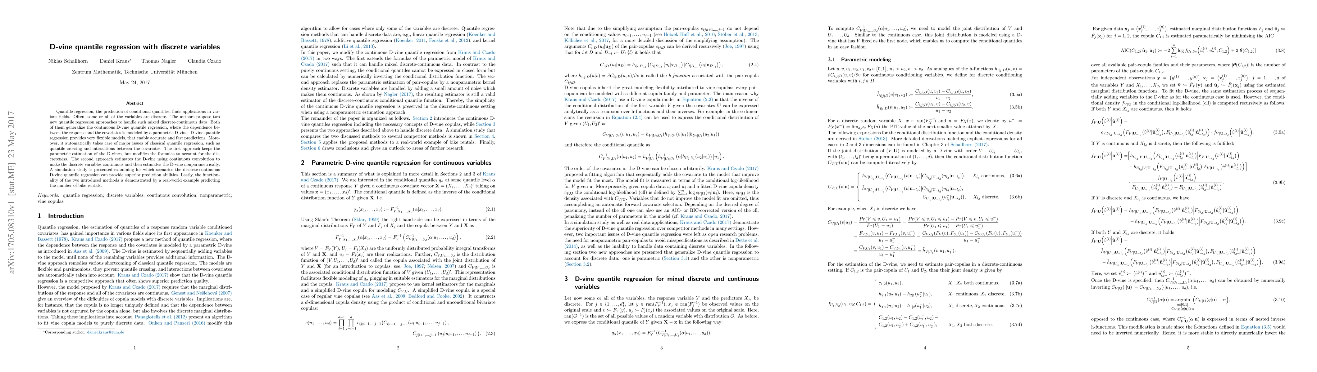 This paper proposes two new quantile regression methods for mixed discrete-continuous data, generalizing continuous D-vine quantile regression. The methods handle discrete variables either parametrically or by transforming them to continuous for nonparametric D-vine estimation, and are demonstrated through simulations and a real-world bike rental prediction example.