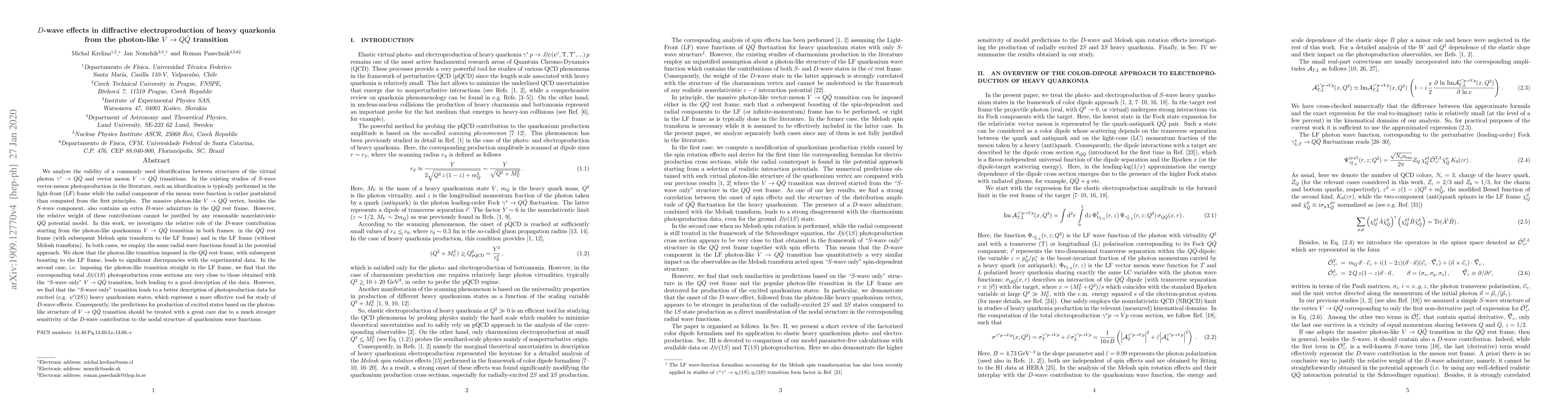 This paper investigates the $D$-wave effects in the diffractive electroproduction of heavy quarkonia via the $V\rightarrow Q\bar Q$ transition, finding significant discrepancies when considering the $Q\bar Q$ rest frame versus the light-front frame, with the latter providing a better fit to experimental data for excited states.
