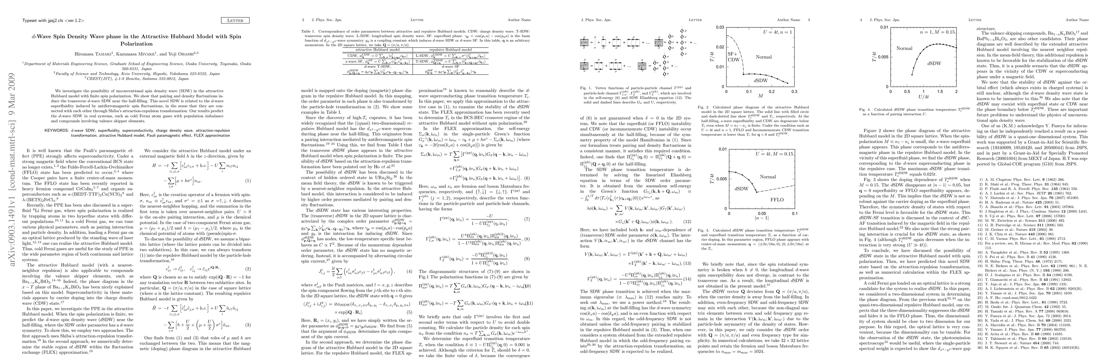 This paper explores the emergence of a d-wave spin density wave (SDW) in the attractive Hubbard model with spin polarization, demonstrating that pairing and density fluctuations induce this unconventional SDW near half-filling, linked to d-wave superfluidity via Shiba's transformation, with implications for cold Fermi gases and valence skipper compounds.