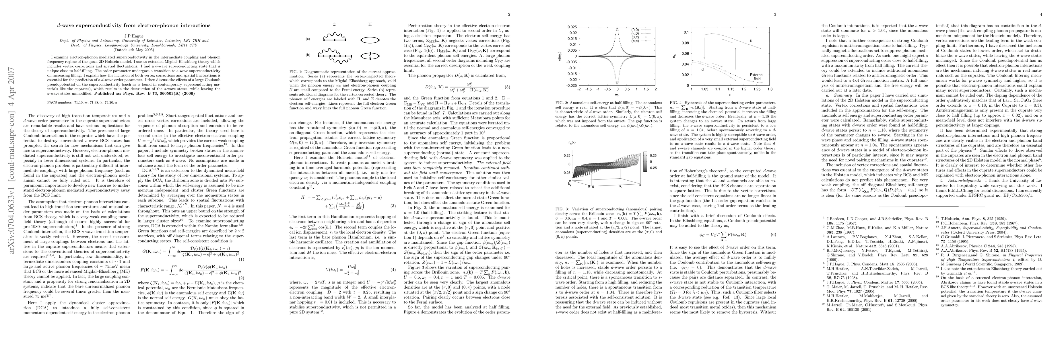 I examine electron-phonon mediated superconductivity in the intermediate coupling and phonon frequency regime of the quasi-2D Holstein model. I use an extended Migdal-Eliashberg theory which includes vertex corrections and spatial fluctuations. I find a d-wave superconducting state that is unique close to half-filling. The order parameter undergoes a transition to s-wave superconductivity on increasing filling. I explain how the inclusion of both vertex corrections and spatial fluctuations is essential for the prediction of a d-wave order parameter. I then discuss the effects of a large Coulomb pseudopotential on the superconductivity (such as is found in contemporary superconducting materials like the cuprates), which results in the destruction of the s-wave states, while leaving the d-wave states unmodified.
