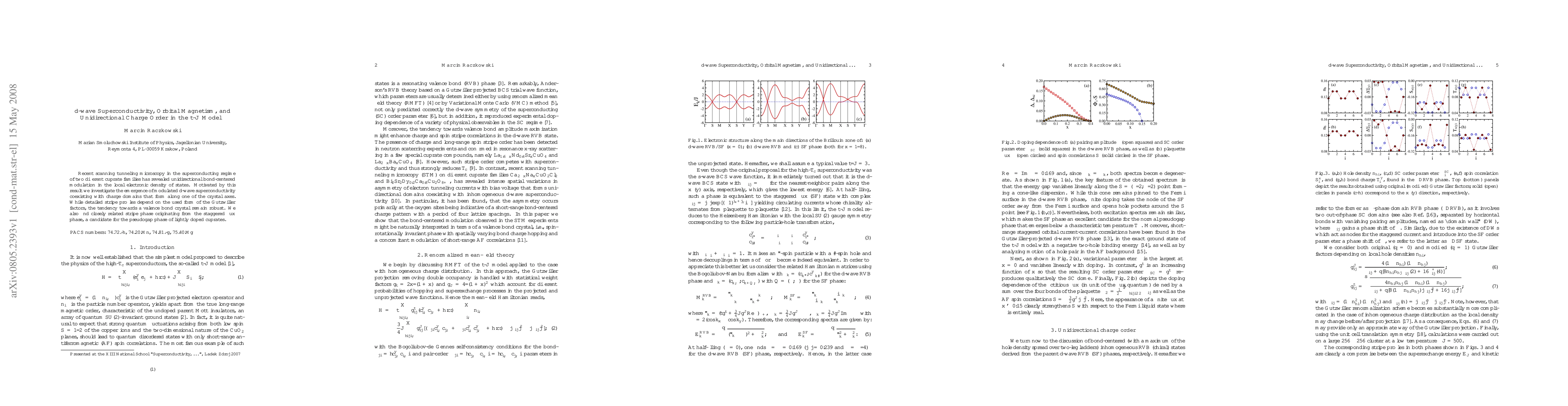This paper explores the coexistence of modulated d-wave superconductivity and unidirectional charge order in the t-J model, revealing bond-centered modulations in electronic density of states observed in cuprates. It finds robust tendencies towards valence bond crystals and identifies a related stripe phase from the staggered flux phase, potentially explaining the pseudogap phase in lightly doped cuprates.